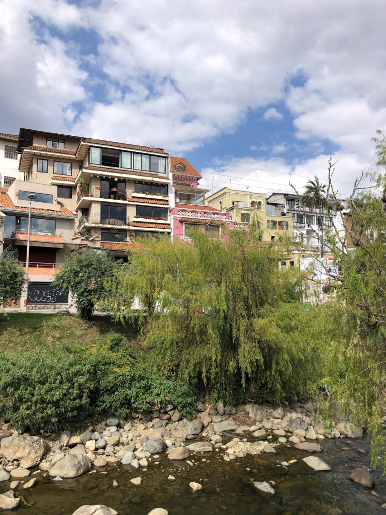 Je retourne à l’hôtel à l’heure du déjeuner afin de profiter du wifi pour continuer mes recherches. J’y fais la connaissance de Clara et Vincent, un autre couple de français fort sympathiques. Je précise ici que je ne m’abstiens nullement de converser avec des aventuriers venus d’un autre pays que le mien. Mais force est de constater que nos compatriotes semblent bien les seuls européens à braver la pandémie pour découvrir le monde…Aubaine, ils connaissent les Galápagos et me renseignent, me faisant ainsi gagner un temps précieux. Dans la foulée, je contacte un hôtel sur place pour m’aider avec les (nombreuses) formalités nécessaires pour se rendre aux îles. Je pars ensuite vers la clinique « Latina », d’où je ressors lesté cinq minutes plus tard d’un peu de mucus et de 120$. Je passe le reste de l’après-midi à flâner et à bouquiner au soleil, entre les bords de la rivière et la place San Blas.