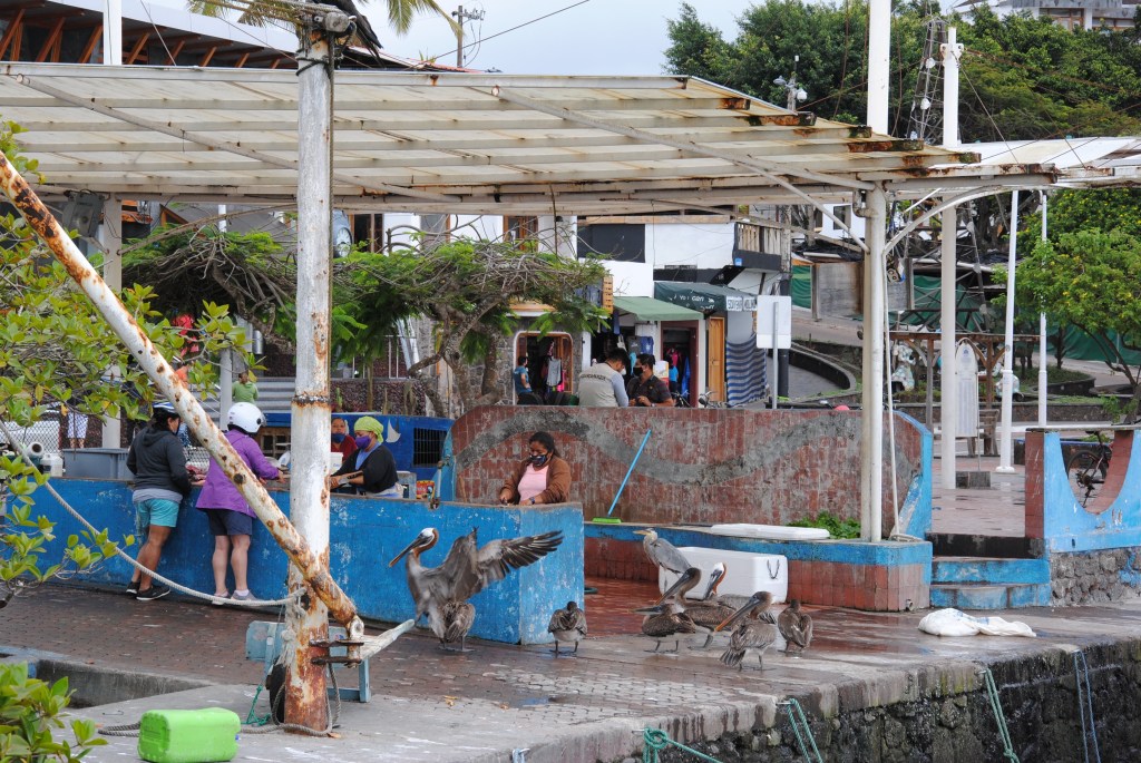 Samedi matin, Puerto Ayora. Aujourd’hui, le programme est simple : découvrir Tortuga Bay, une des pépite de Santa Cruz, accessible à pied de Porto Ayora. Mes charmants hôtes me préparent un petit déjeuner sommaire, puis, appareil photo en main, je traverse la ville en direction du sentier de la baie des tortues. Je passe devant le port, où un groupe de pélicans semble converser avec les pêcheurs, en habitués.