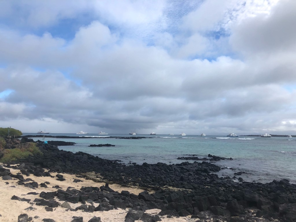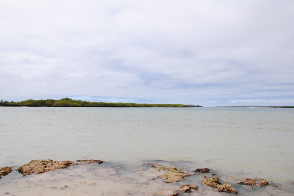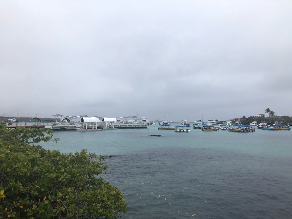 Le bus me laisse au petit port de Puerto Ayora. Sous le ciel couvert, la mer a des reflets d’opale blanche. Mais on devine que, touchée par les rayons du soleil, elle révélera ses teintes turquoises.