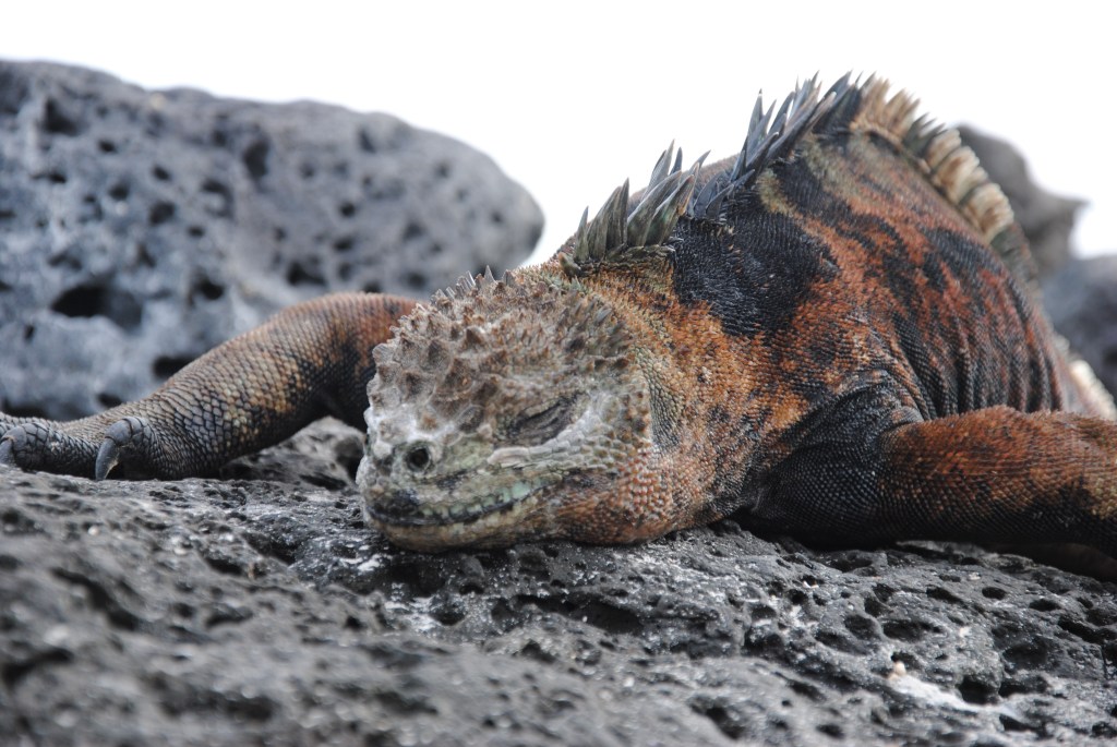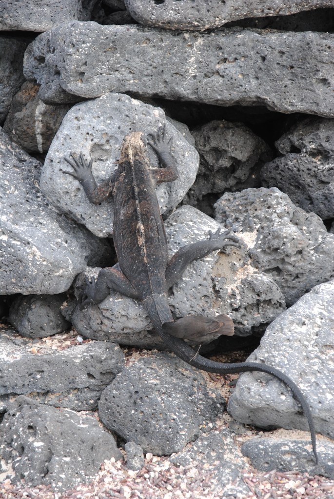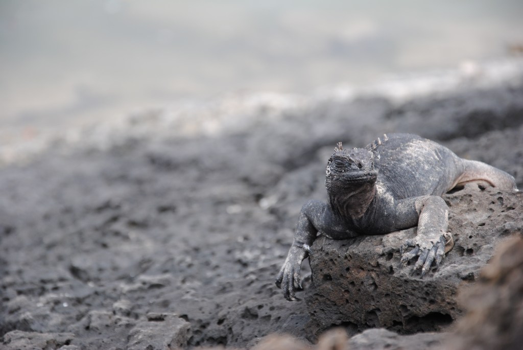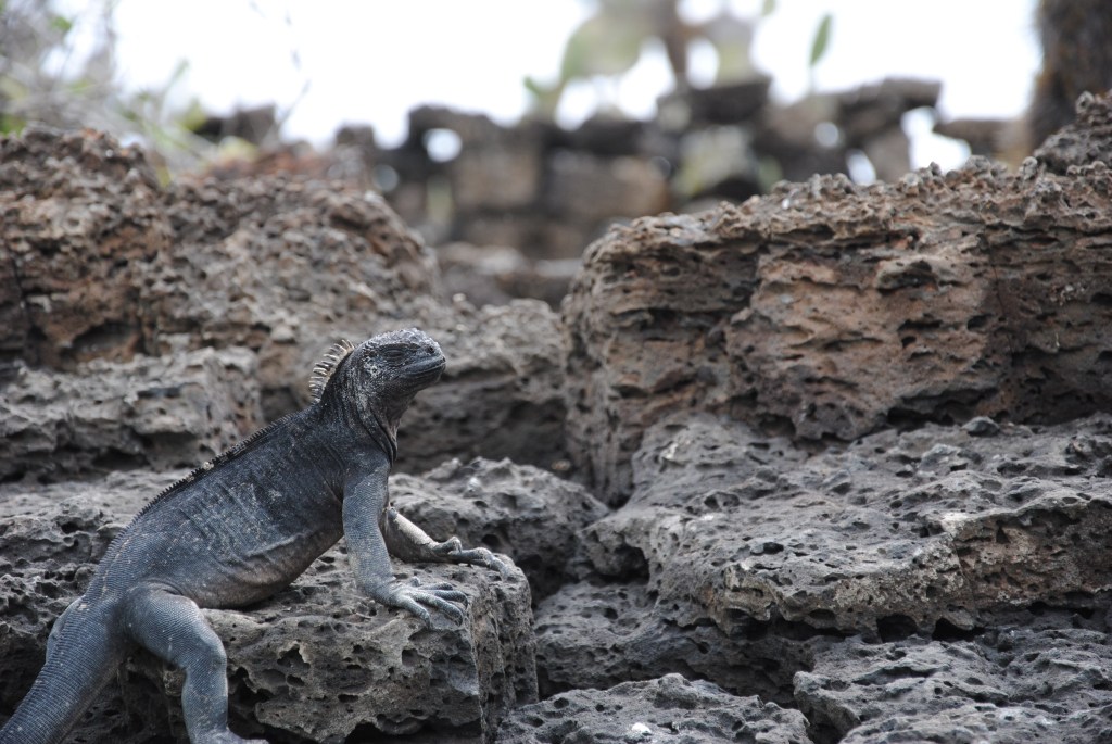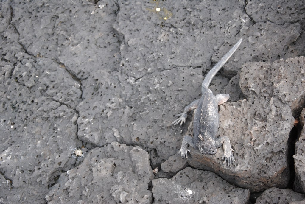 J’explore les environs. Il faut être prudent et faire attention à ses pieds ! Je manque d’écraser un pauvre petit iguane qui se confond avec la roche volcanique…L’impassibilité de ces êtres d’un autre temps est désarmante. Ils me fascinent. Ils semblent avoir été forgés dans les entrailles de la terre, mais ne dégagent pas une once d’agressivité. Dans leur regard de pierre se lit seulement une indifférence sereine.