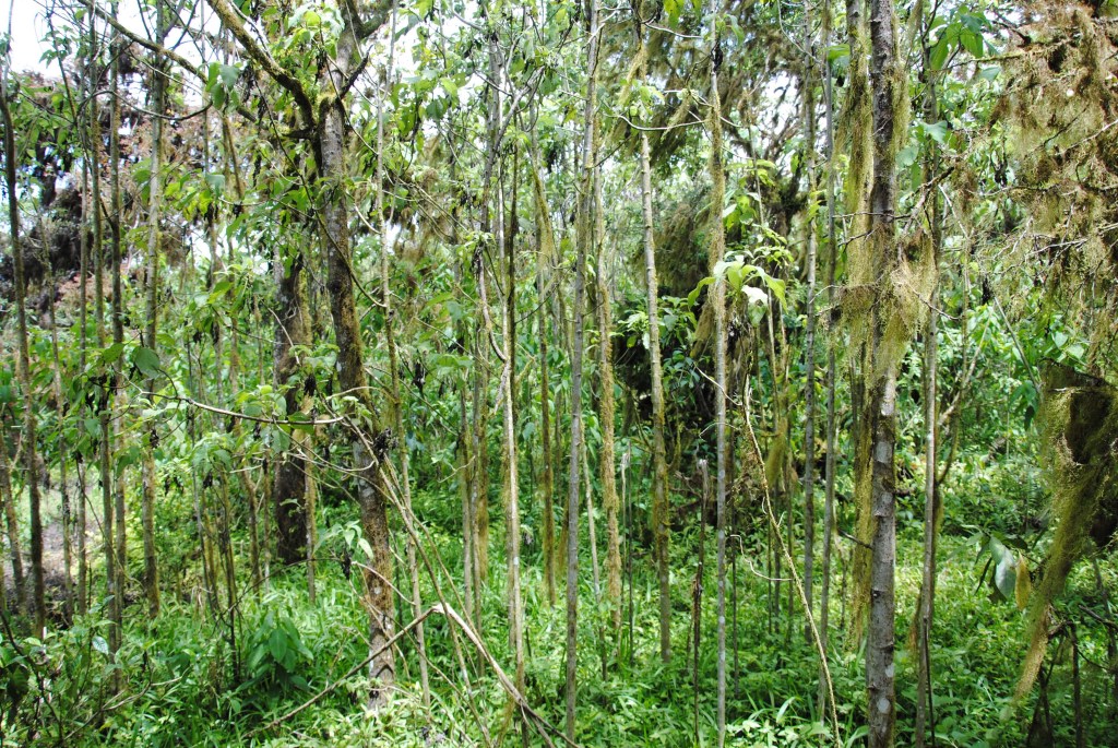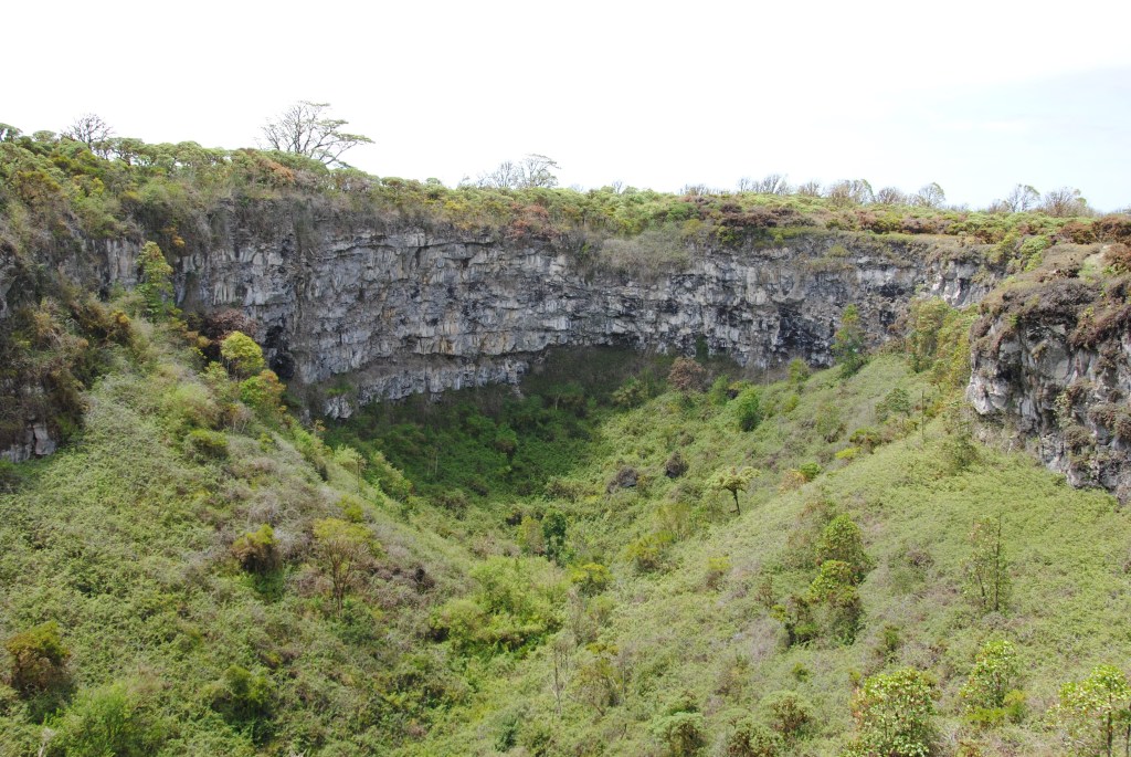 Dimanche, hôtel Sueños Silvestres. Aujourd’hui, je vais explorer l’intérieur de l’île. Après le bonheur d’un premier “Google meet” familial, je vais louer une bicyclette pour la journée, accompagné de Vincent. La route grimpe vers le centre de l’île. Vincent dans mon sillon, nous parvenons à Bellavista, puis tournons à gauche vers Santa Rosa. Là, mon compagnon d’échappée me laisse, fourbu, pour aller retrouver sa dame. Je continue, en montée toujours, vers Los Gemelos, deux gouffres de parts et d’autre de la route, au beau milieu du parc national des Galápagos. Ils ressemblent à des cratères effondrés mais ce ne sont pas des volcans. C’est tout de même bien l’activité volcanique qui est à l’origine de ces effondrement. La forêt qui borde Los Gemelos déborde de pinsons de Darwin, des noirs, des bruns, des jaunes…