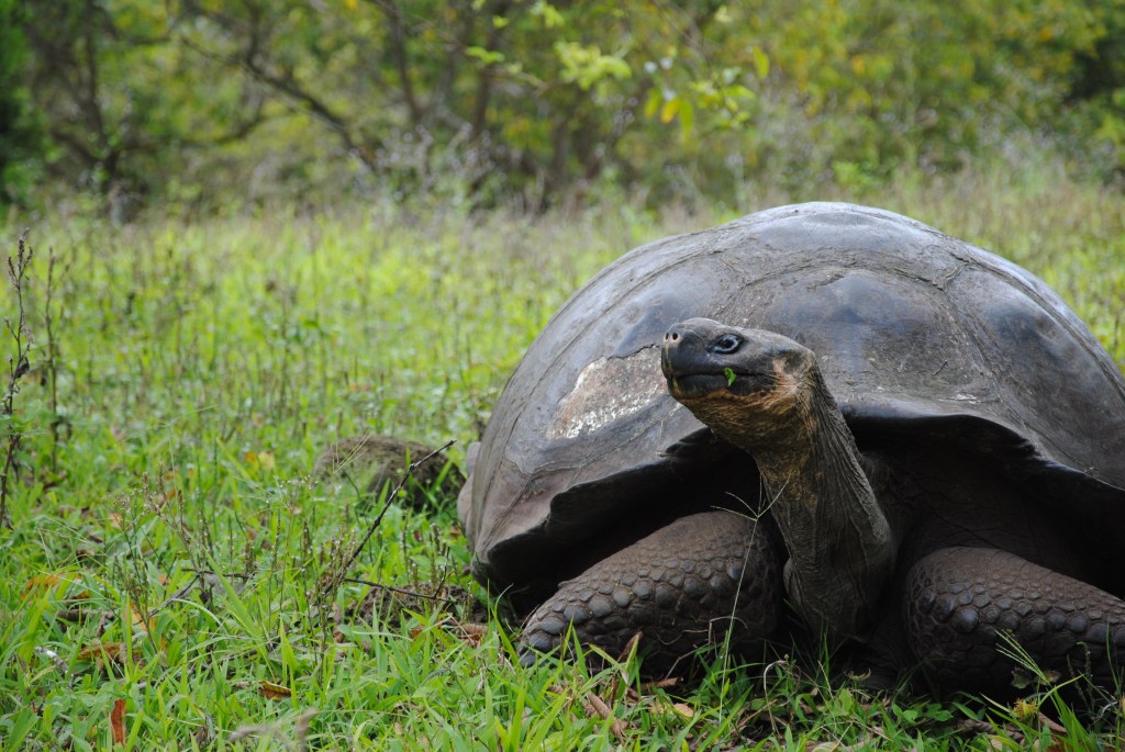 Je remonte sur mon vélo et fais demie tour pour la seconde attraction de la journée : le ranch El Chato et ses tortues géantes. Le lieu est très vert, à vrai dire je ne m’attendais pas à rencontrer ce type de paysage au Galápagos. Et au milieu des clairières, d’énormes tortues se promènent paisiblement. C’est autrement plus impressionnant des les voir évoluer dans leur milieu naturel. Lorsque l’on s’en approche trop, elle rentrent à l’intérieur de leur carapace émettant un bruit aérien, entre l’aspirateur et la respiration saccadée de Darth Vador…Elles sont les doyennes de l’île. L’île est leur territoire. Elles ne connaissent pas d’enclos, et vont et viennent comme bon leur semble (c’est pourquoi on les trouve si fréquemment sur les routes…). Ces étranges créatures imposent le respect, à l’image de ces chefs indiens ridés au regard d’une profondeur infinie. Elles nous rappellent de façon saisissante que nous, humains, ne sommes qu’une espèce parmi les autres, et bien plus jeune de surcroît.