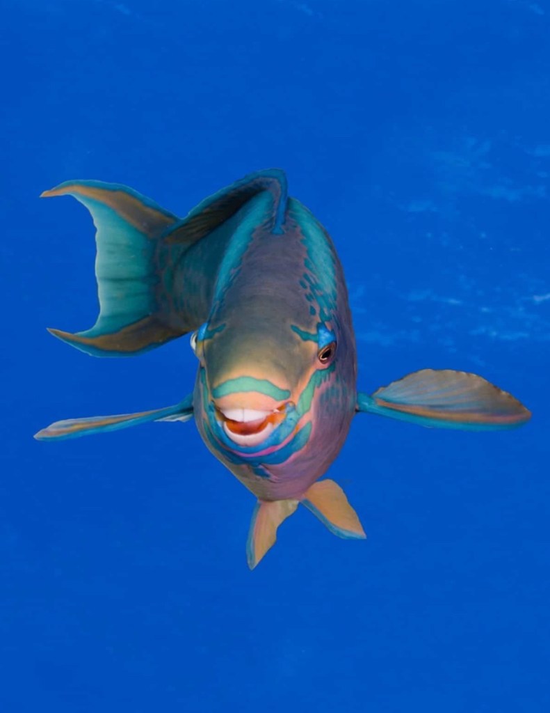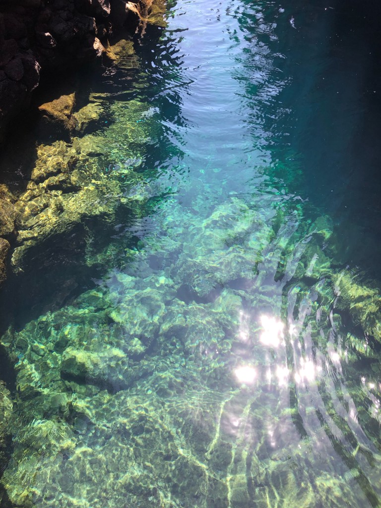 Je plonge dans le premier bassin, muni d’un masque et d’un tuba. L’eau est délicieuse, chauffée par les rayons du soleil, qui émerge entre les parois de pierre. Et j’ai le lieu presque pour moi seul. Je le partage tout de même avec quelques minuscules iguanes marins, et de superbes poissons perroquets ! Je passe un long moment à nager, à quelques mètres de profondeur, avec ces drôles d’oiseaux des mers. Je retrouve l’intense joie enfantine que je ressentais en explorant les fonds de l’île de Bendor à la recherche de poulpes, ou de rascasses. Encore un moment magique.