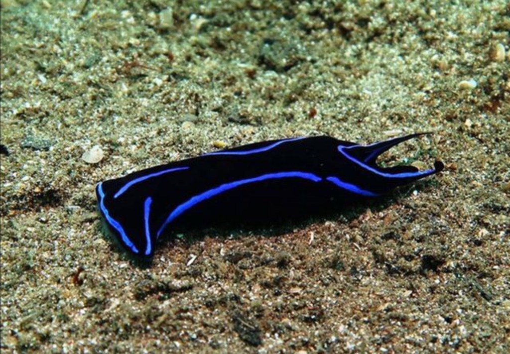 Richard nous montre alors une minuscule nudibranche noire et bleue, rappel que la magie de la mer réside également dans les petites choses.