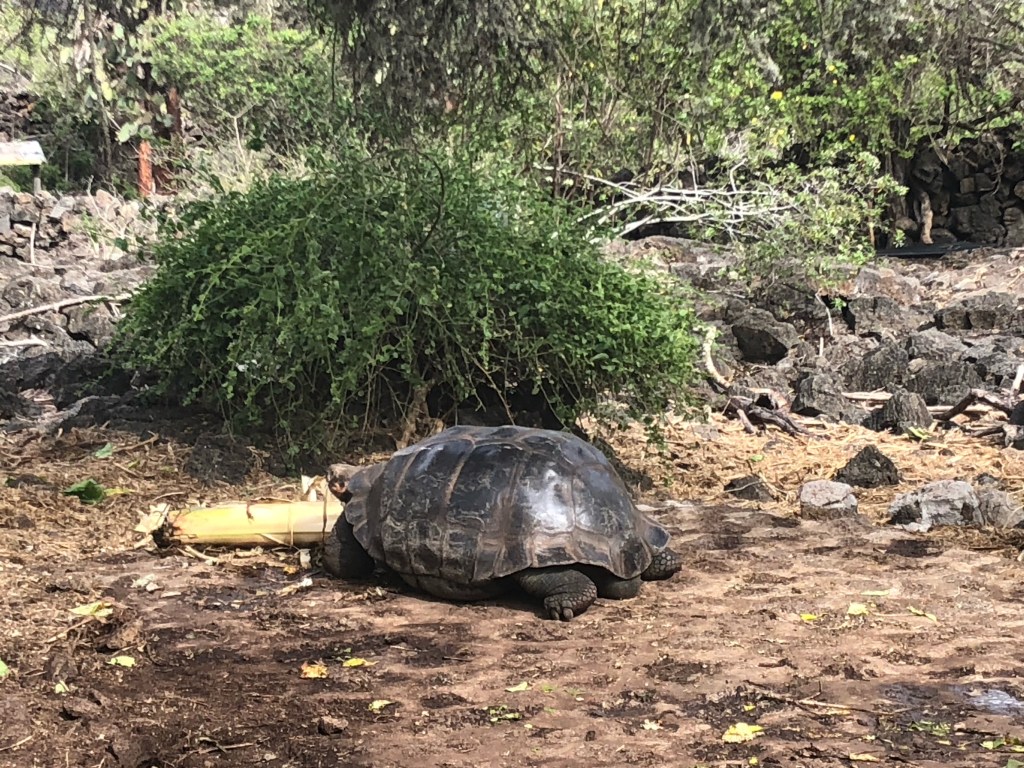 Le temps d’enfiler short et tongs et me voilà parti à la découverte du coin. Enfin après un almuerzo puisque le voyage m’a donné faim. L’après midi est déjà bien entamée : je décide de remettre à demain le premier bain de mer et les premières émotions de snorkelling, et choisis de me rendre au Charles Darwin Center. Cette station de recherche œuvre pour la pérennité des écosystèmes et espèces endémiques de l’archipel. C‘est d’ailleurs un refuge pour les tortues des Galápagos, qui sont légions dans le centre. Un guide nous mène, avec mes acolytes du moment, un couple d’américains et un autre d’équatoriens, à travers les enclos des différentes espèces. Certaines sont énormes ! Et dépassent les 150 ans…Ces créatures préhistoriques dégagent à la fois une force brute, archaïque, et une subtile douceur.