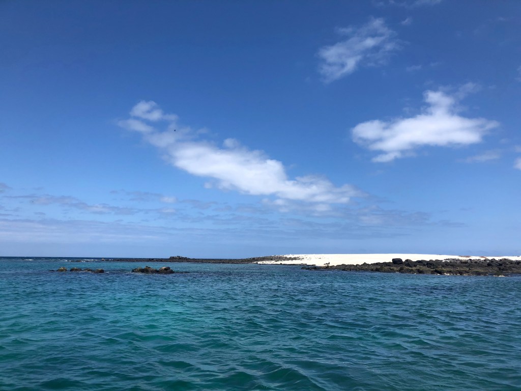Un contrôle de nos jauges d’oxygène nous indique qu’il va falloir remonter. Déjà ! Nous sommes sous l’eau depuis 40 minutes, mais j’ai perdu toute notion du temps dans ces limbes aquatiques. Toute notion des distances aussi, puisque j’apprends que nous sommes descendus à 13m de profondeur, alors que la surface me paraissait si proche…De retour dans le bateau, je reste béat pendant quelques minutes, nostalgique de cette envoûtante expérience. Puis nous échangeons nos impressions avec entrain avec Julie, Aurélien, Vincent et Augustin. Le verdict est unanime, nous venons de vivre une plongée somptueuse ! Pour le déjeuner, nous nous régalons de ceviche à bord, devant un band de sable blanc où paressent de nombreux lions de mer.