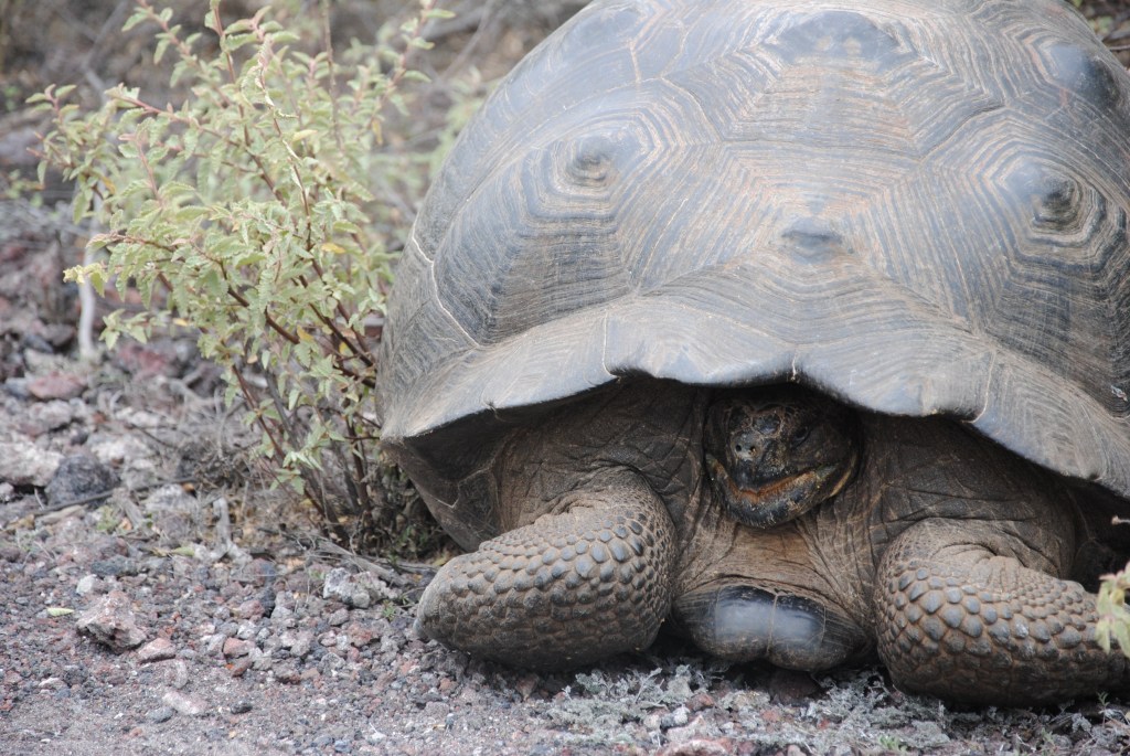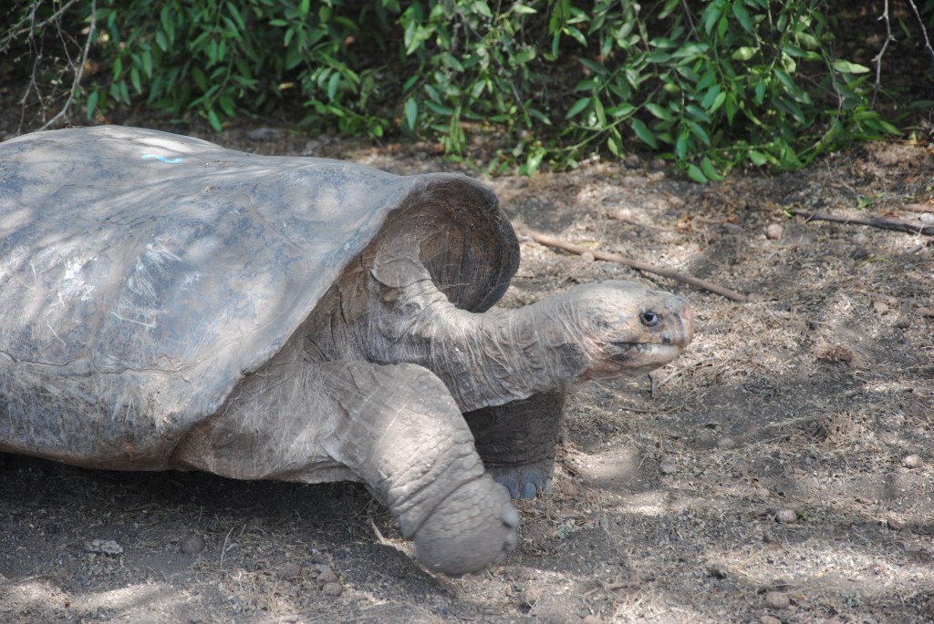J’arrive devant le centre, vide mais ouvert, et commence ainsi ma visite. Dans ces enclos ternes, le charme de ces animaux préhistoriques opère moins qu’au ranch d’El chato sur Santa Cruz. Mais je découvre tout de même une espèce étrange, dont la carapace est écrasée sur le dessus.