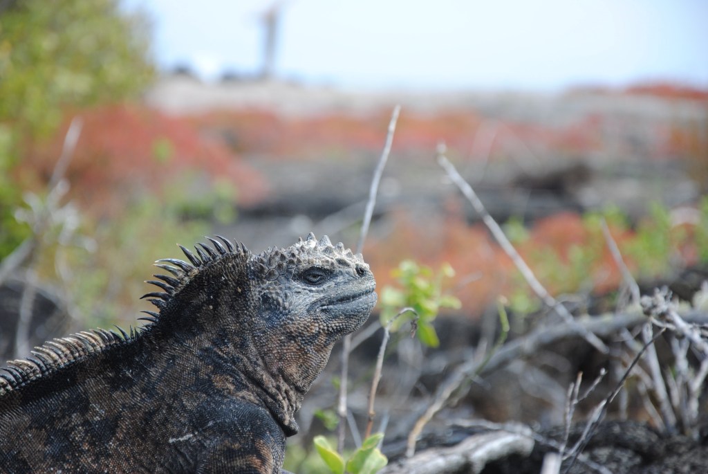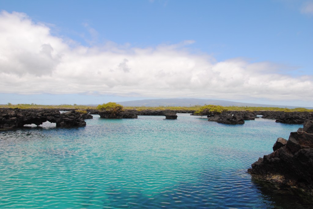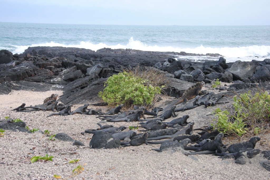 De multiples petits chemins s’écartent de la route pour mener, là à une petite lagune où voguent des canards des Galápagos, là à une jolie plage où s’entassent les iguanes marins.