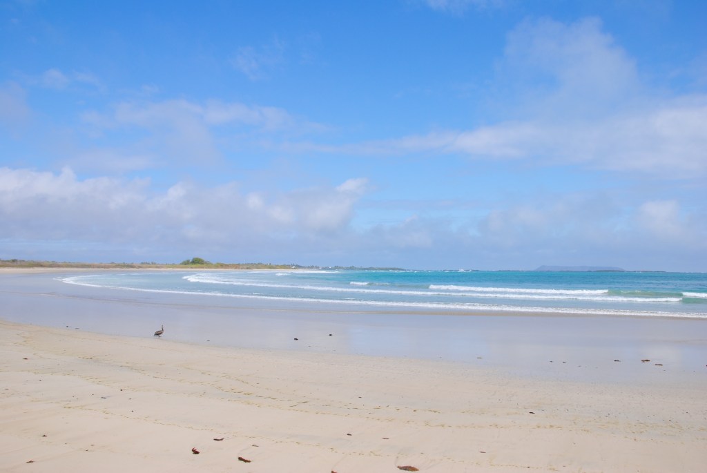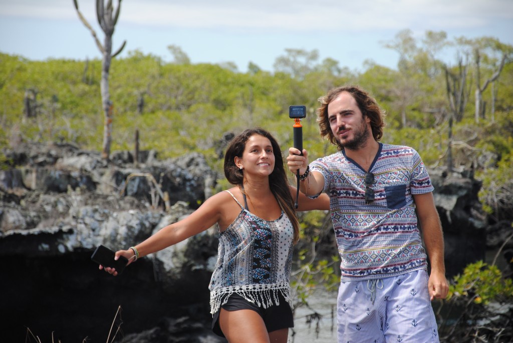 Sur le chemin du retour, outre quelques tortues géantes et ces diables de pinsons qui me narguent, je croise une sympathique famille équatorienne très amicale. Une séance de selfies avec tous les membres de la famille, et me voilà reparti. A l’approche de la fin du sentier, et donc de mon hôtel, le soleil prend le dessus sur les nuages et redonnent à la plage ses couleurs blanche, turquoise, et bleu profond. Je me jette dans les vagues, et joue dans les rouleaux sous les yeux des fous qui volent en rase-mottes à la surface de l’eau. Je sèche au soleil, savourant d’avoir une nouvelle fois cet immense espace pour moi seul.