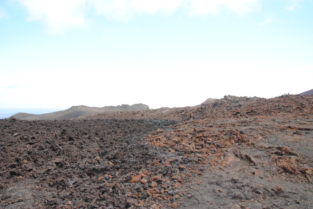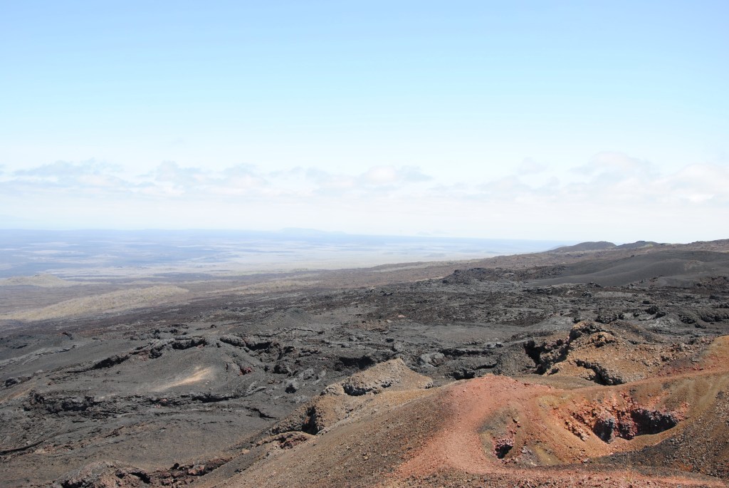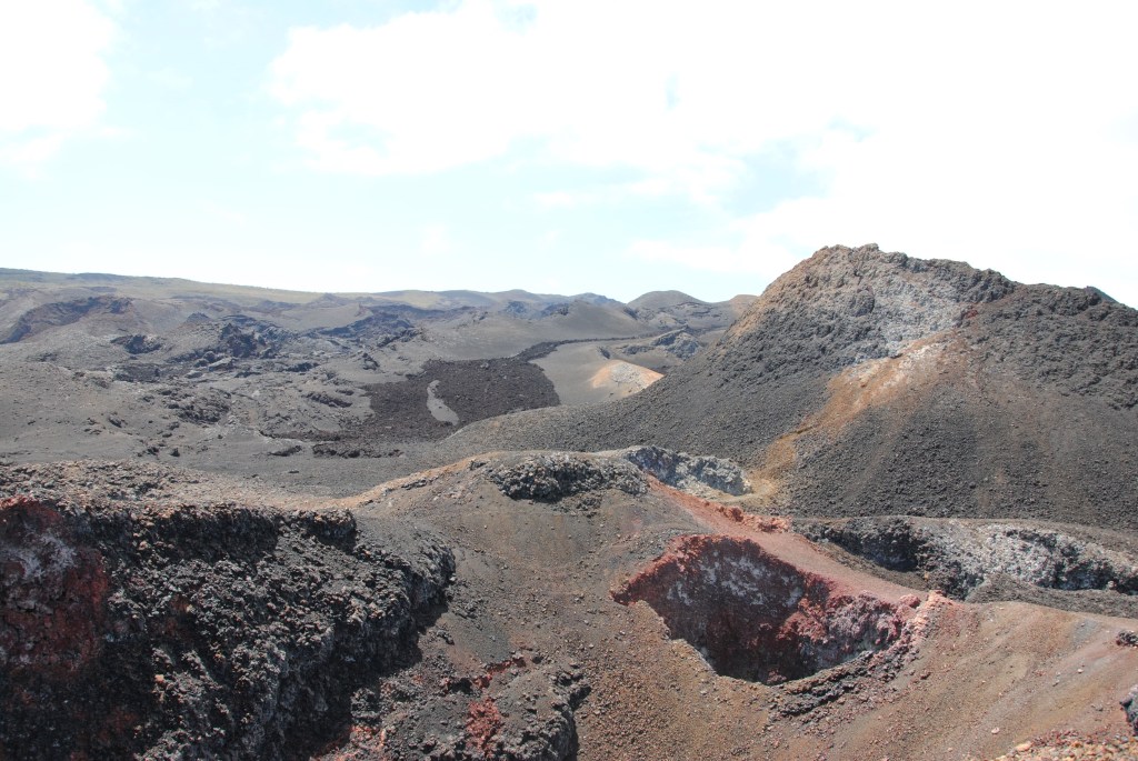 Selon l’ancienneté des coulées de lave, la couleur du sol varie du noir charbon au rouge-ocre caractéristique du fer oxydé. Nous sommes ainsi tantôt sur Mars, tantôt sur la Lune.