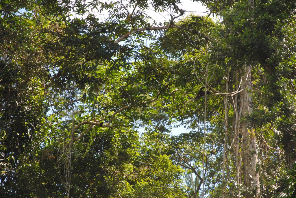 Vers 16h, nous reprenons place dans le canot pour partir à la chasse aux toucans.