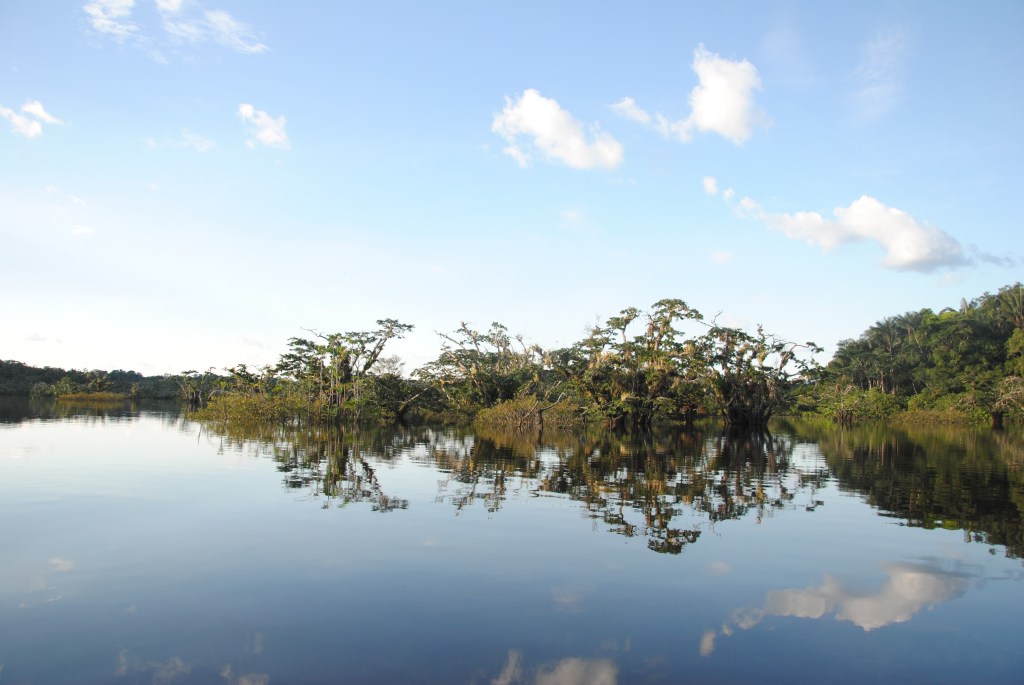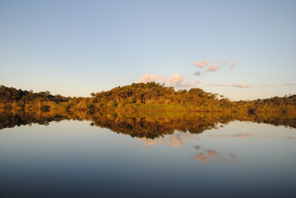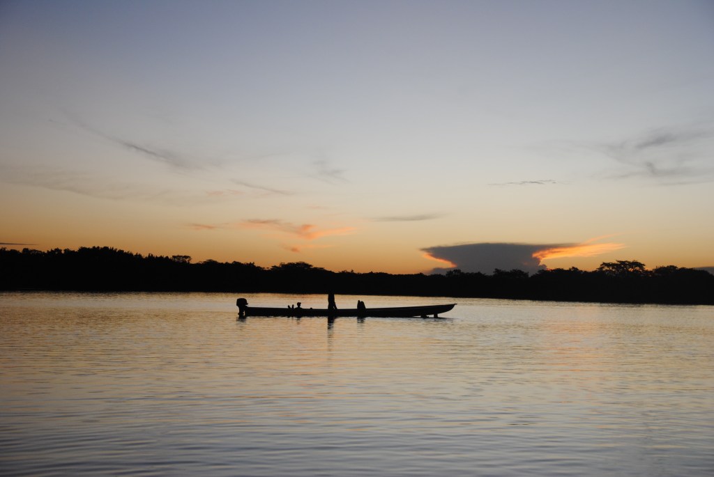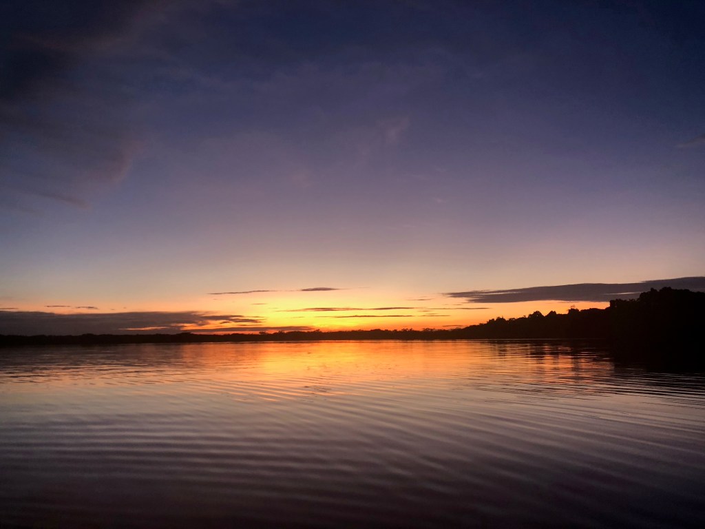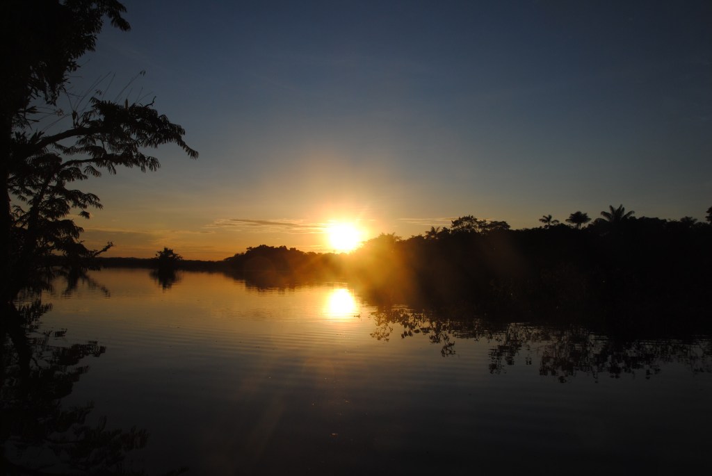 Lundi matin, Parc national Cuyabeno. Nuit agitée. Serpents et araignées en tout genre se sont succédés dans mes draps. Enfin plutôt dans ma tête, ses charmantes bêtes ayant sûrement mieux à faire que de hanter ma chambre. Je ne suis donc pas très frais à 6h, au moment de partir, pagaie en main, pour un tour d’observation matinale de la lagune en canoë. Mais je m’éveille sans mal devant la beauté de l’iguapo dans les lueurs de l’aube.