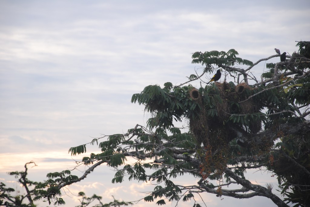 Sur le trajet, un escadron d’oropendolas vole haut dans le ciel.