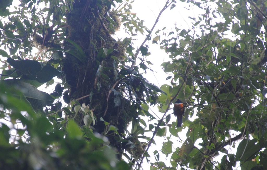 Elle est aussi comme “trouée” par endroit, offrant ainsi une plus ample profondeur de champs pour tenter d’apercevoir oiseaux et mammifères. D’ailleurs, Damien ne tarde pas à repérer un sublime trogon qui se repose sur une branche.