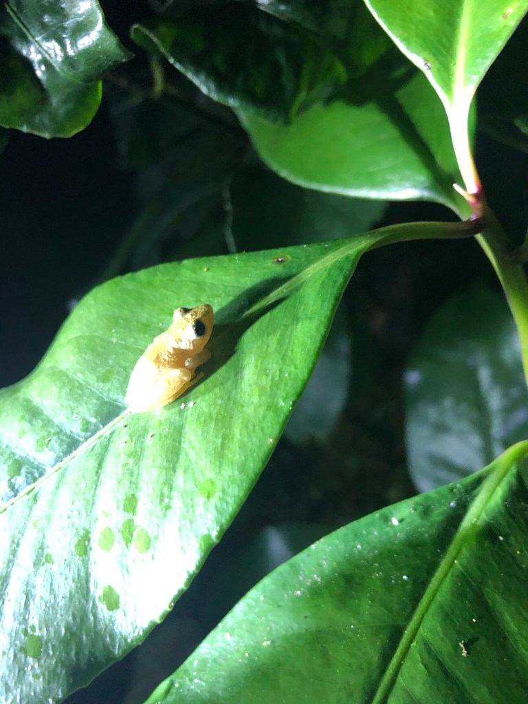 Nous restons dans les mignoneries en découvrant les rainettes pygmées, grenouilles miniatures posées sur les feuilles et les fleurs de la forêt.