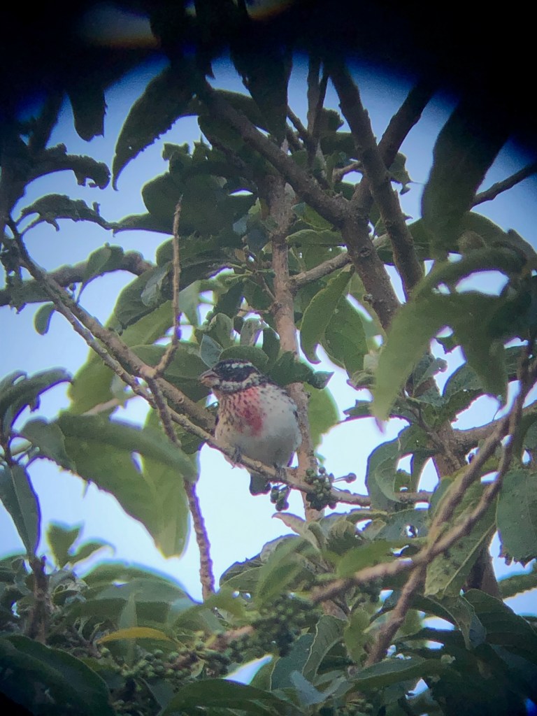 Puis le festival commence. Stratégiquement positionnés à proximité de trois gros arbres lourds de fruits savoureux, nous sommes vite déboussolés par la multitude d’espèces qui vont et viennent entre les branches. Mais Marco, en professionnel aguerri, reprend vite ses esprits au milieu de cette abondance aviaire, et structure notre observation, lui donnant un ordre logique. D’abord les espèces insaisissables, qui picorent et disparaissent en un éclair, à l’anglaise. Nous aurons tout loisir d’admirer les autres, plus latines, qui prennent leur temps pour déjeuner, plus tard.