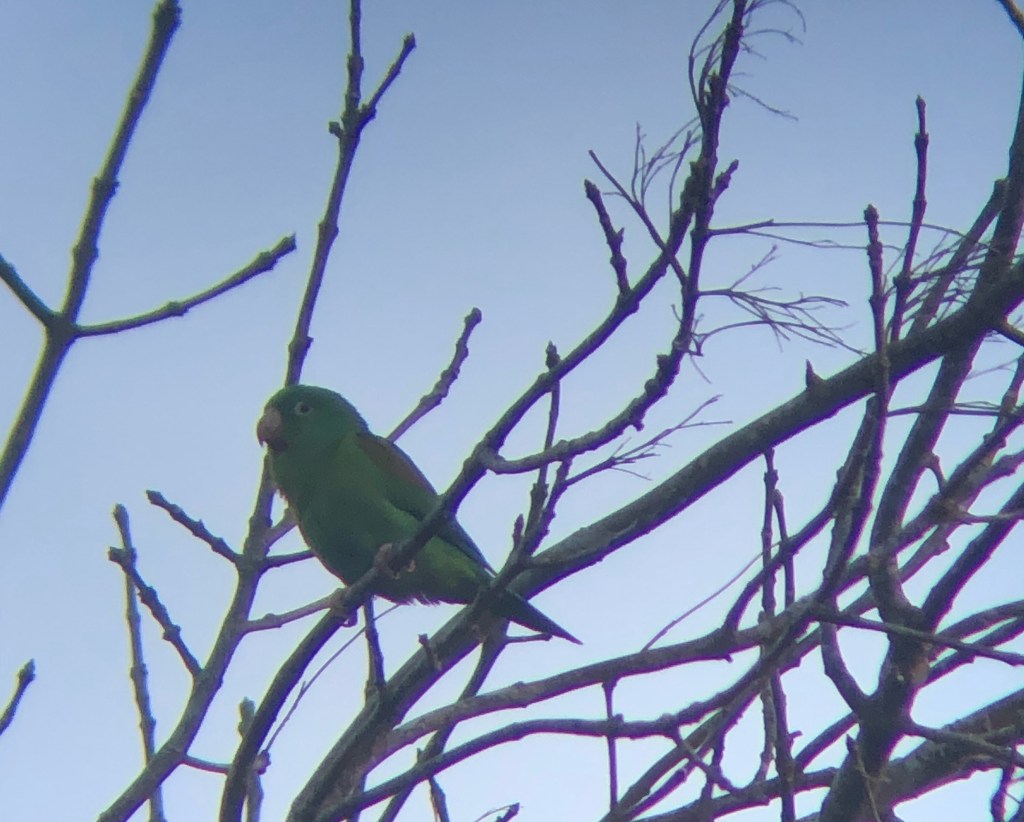 De jolies perruches vertes et brunes complètent le comité de bienvenue.