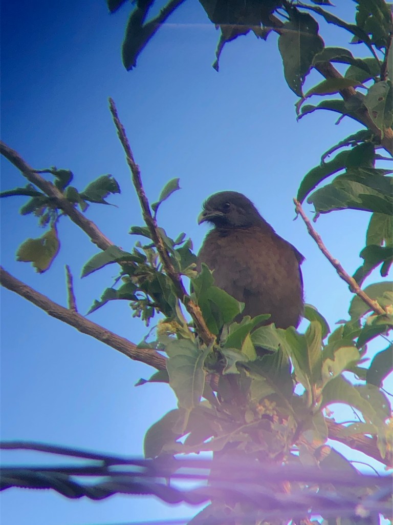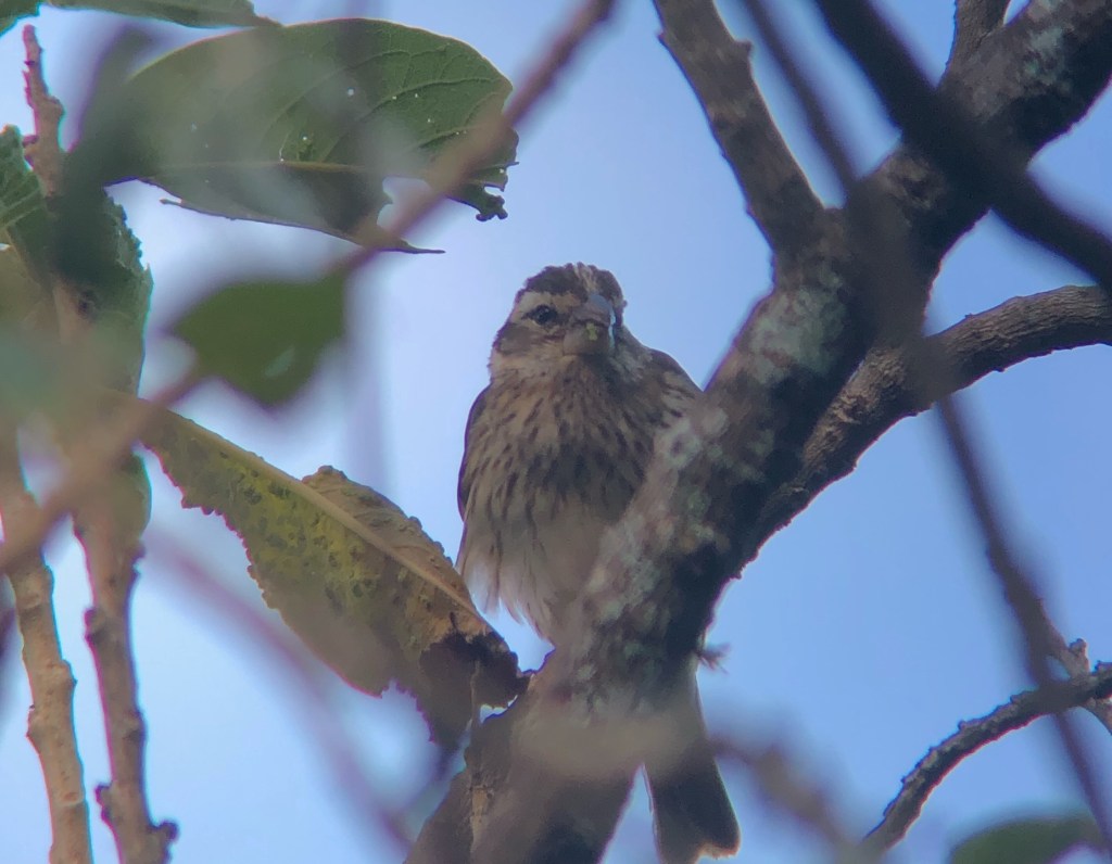 Dans les herbes, armés de patience, nous cherchons les sautillants sparrows, et avons la chance de distinguer la robe rayée brune, noire et grise du rufous-collared sparrow, et les tâches jaunes et blanches sur la tête du white-eared ground sparrow.