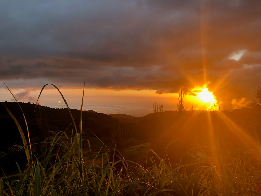 Robert, qui a passé la journée à étudier les offres de volontariat dans le pays (il réfléchit à prolonger son séjour de quelques semaines) me rejoint pour une balade dans les environs. Au détour d’un virage, nous croisons quelques dizaines de badauds répartis le long de la route afin d’observer le coucher du soleil. Un coup d’œil au panorama suffit pour expliquer l’attroupement.