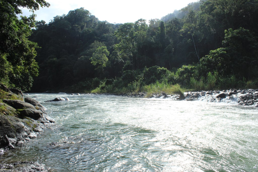 Nous rejoignons notre point de mise à l’eau, et Luis nous donne les consignes de sécurité. Et c’est parti pour trois heures de navigation sur une rivière célèbre dans toute l’Amérique centrale pour son sensationnel paysage. Après des débuts balbutiants, nous nous coordonnons avec Kristle jusqu’à trouver notre rythme, à la grande satisfaction de Luis. Dès les premières méandres, la vue est époustouflante. La forêt tropicale, sauvage, recouvre grandes et petites collines où l’on devine une intense vie animale. Quelques tribus indigènes habitent là, dans les profondeurs de la forêt, perpétuant des traditions ancestrales. Sur les berges où pousse la « caña brava », les cormorans font sécher leurs ailes pendant que les hérons tigrés sondent le sol en quête de nourriture. Un martin-pêcheur traverse en rase-mottes la rivière, tandis qu’un superbe oropendola fait le chemin inverse, bien plus haut dans le ciel.