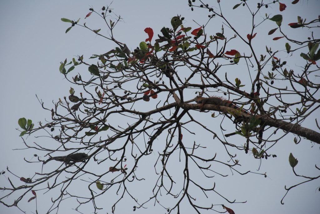 Le parcours est jonché d’étranges créatures orangées qui prennent le soleil sur les arbres bordant la rivière: les iguanes verts arborent leurs habits de lumière pour la saison des amours. Si étrange de voir ces lézards préhistoriques haut perchés dans les branches !