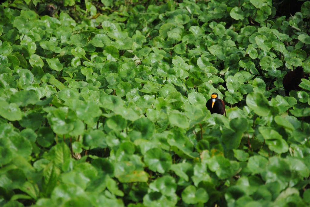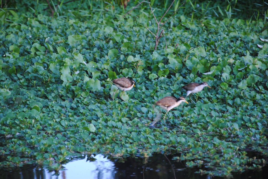 Le spectacle s’ouvre sur le défilé des jacanas, ces petites poules d’eau voguant dans les plantes aquatiques près des berges. Leur tâche jaune au dessus du bec, et leur nage, élégante, leur confèrent une distinction certaine.