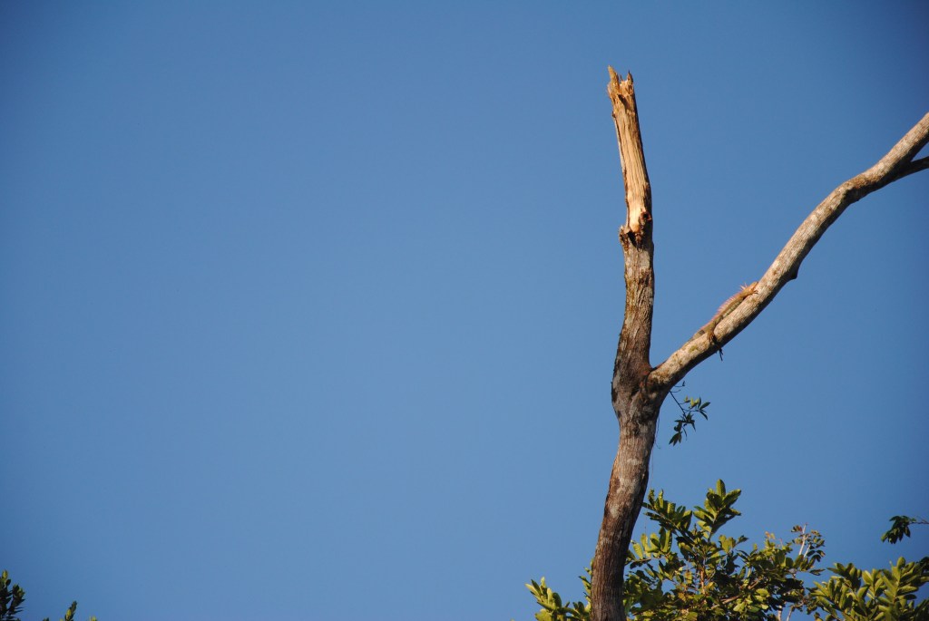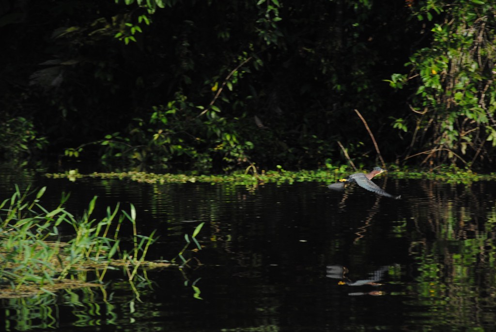 Nous apercevons aussi un grand Martin-pêcheur qui vole haut dans le ciel, étrange pour un oiseau se déplaçant généralement au ras de l’eau. Israël nous indique qu’il s’agit d’un « ringed kingfisher », le plus grand des Martin-pêcheurs et le seul à flotter à ces altitudes.