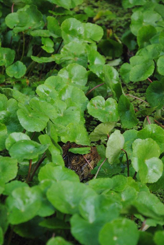 Le festival de reptiles continue. Quelque chose remue à droite de l’embarcation : nous devinons d’abord une rangée de pics larges et épais qui émergent de l’eau. En remontant la queue du regard, brillant d’un feu profond, apparaît l’œil gauche du caïman. Le petit dragon des eaux ne s’émeut guerre de notre présence, et attend patiemment que l’on s’éloigne pour reprendre sa sieste. C’est le premier caïman que je vois d’aussi près, et la rencontre avec cette créature du fond des âges me procure une intense émotion.