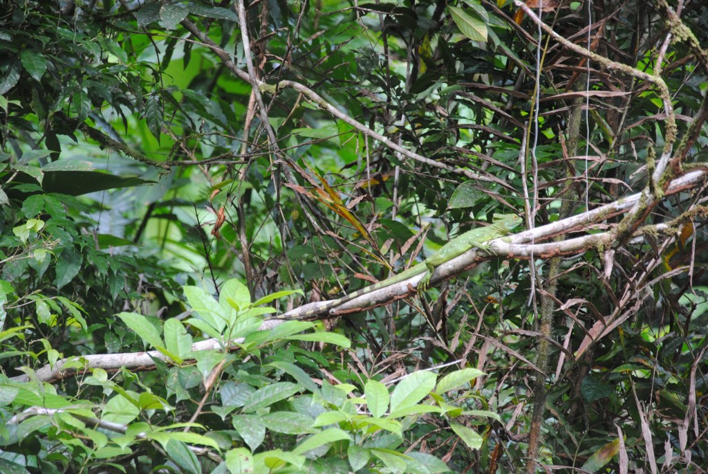 D’autres lézards, plus petits, préfèrent la discrétion des branches basses qui plongent dans le Rio tortuguero. Les basilics, avec leur somptueuse crête et leur couleur changeante, se fondent dans le décor.