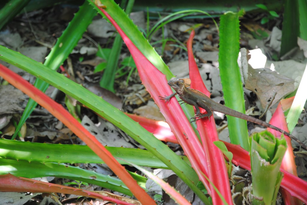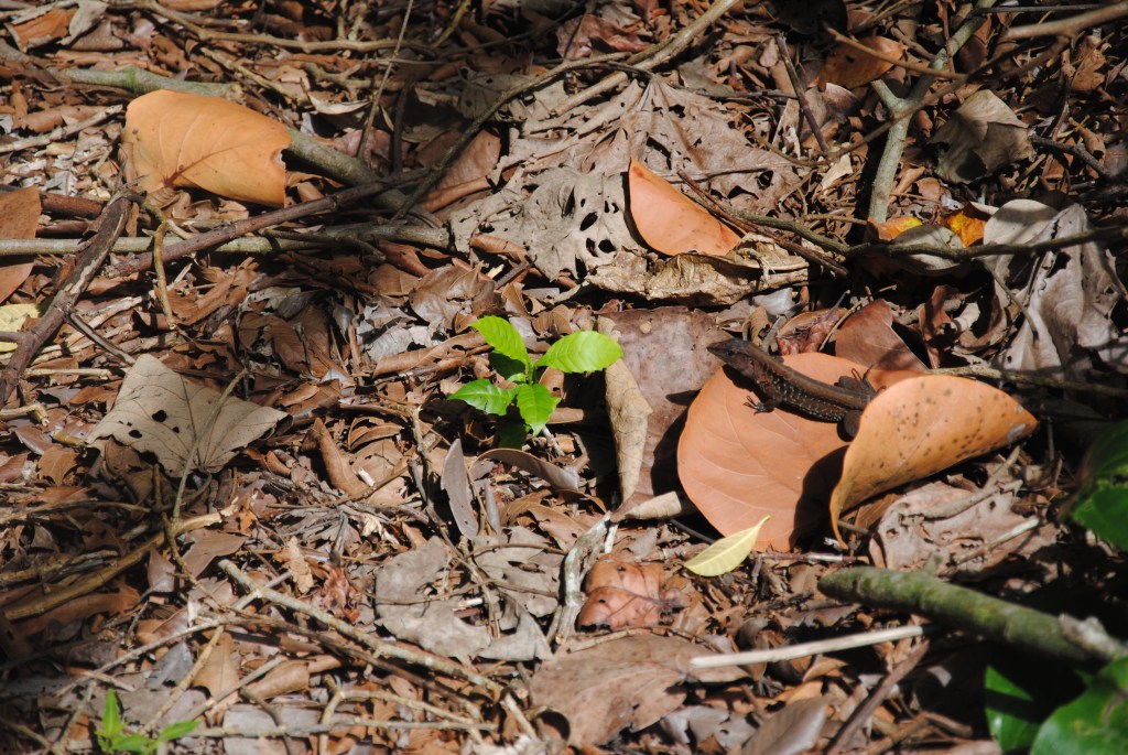 Il y a d’abord ces lézards à la queue verte fluorescente que je croise depuis mon arrivée dans le pays. J’en aperçois quelques individus gigantesques, agiles mais bruyants, au milieu des feuilles mortes.