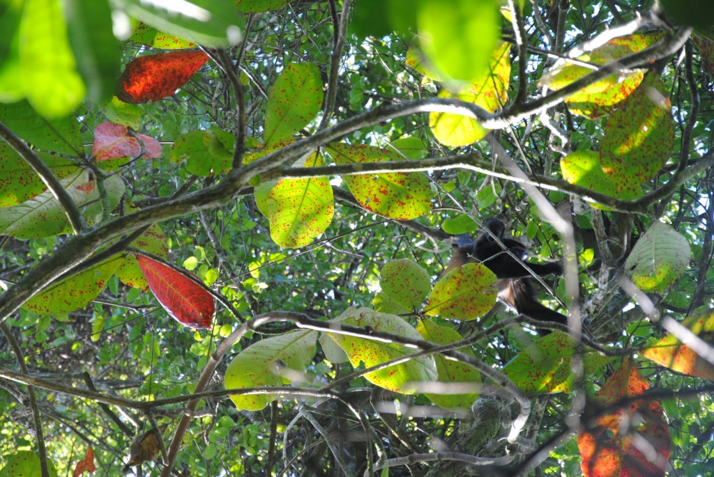 Sans guide, il faut particulièrement prêter l’oreille au moindre bruit, et guetter tout mouvement, pour espérer admirer les habitants de ces bois. La forêt est très calme en cette fin de matinée. Une fois habitué au bruit de l’océan, tout près, et au clair-obscur de l’endroit, mes sens en alerte, le jeu de piste peut commencer.