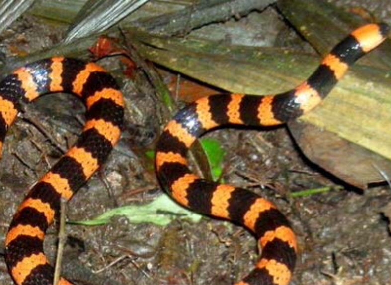 Et dans le dernier virage avant la sortie du parc, je repère un magnifique petit serpent orange et noir, qui s’enfonce à toute allure dans le sol, alerté par mon passage. J’apprendrai plus tard qu’il s’agit d’un mani-banded coral snake, une espèce rare difficile à observer. Quelle chance !