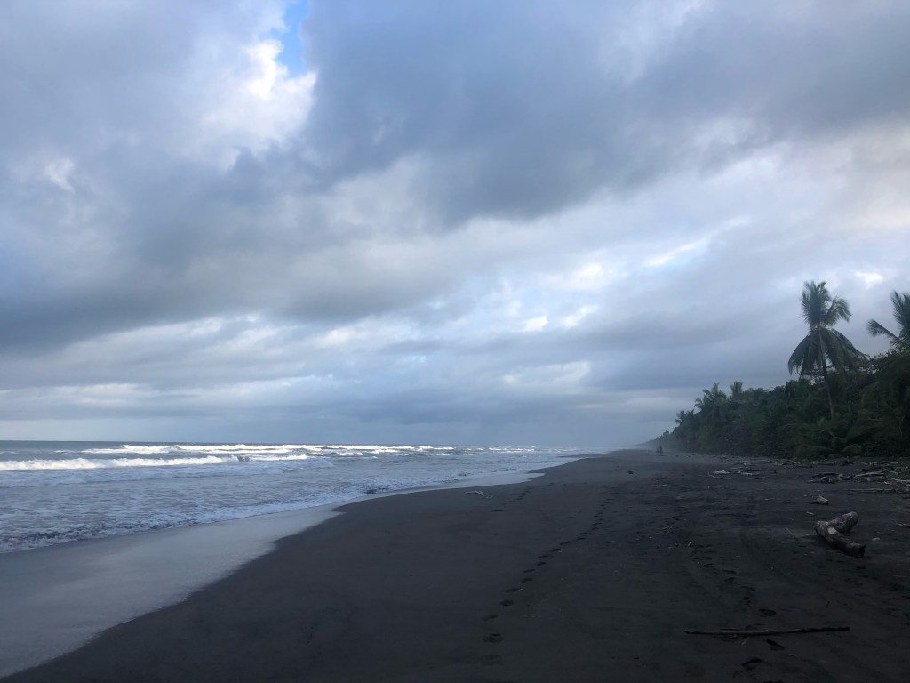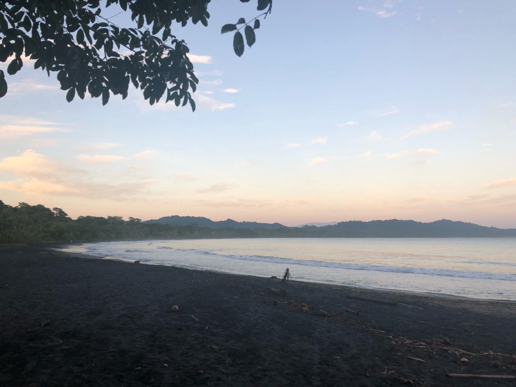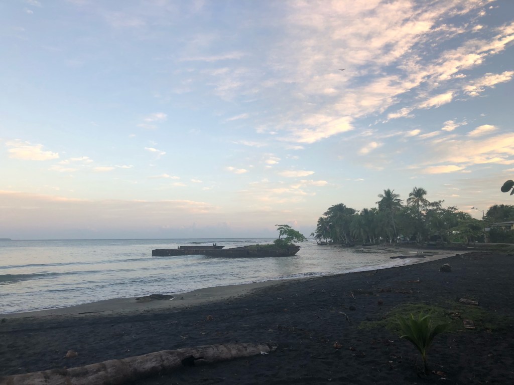 Dimanche matin, Puerto Viejo. Il est 5h. Je regarde le jour se lever sur la baie de sable noir, en attendant le bus de 5h30 pour Limon.
