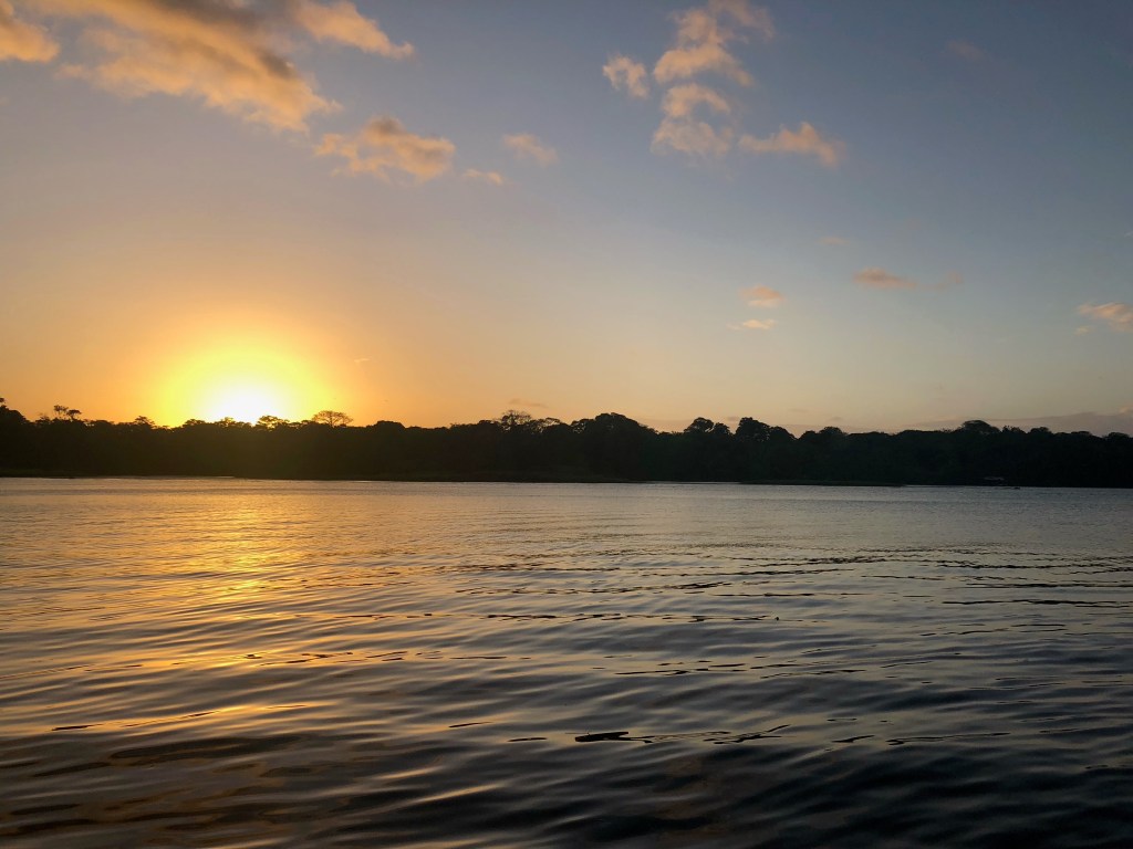 Je pose mes affaires et sors profiter des dernières lueurs du jour sur la plage, d’abord, puis côté rivière, afin d’admirer le soleil qui se couche derrière l’autre rive. J’aime déjà profondément cet endroit !
