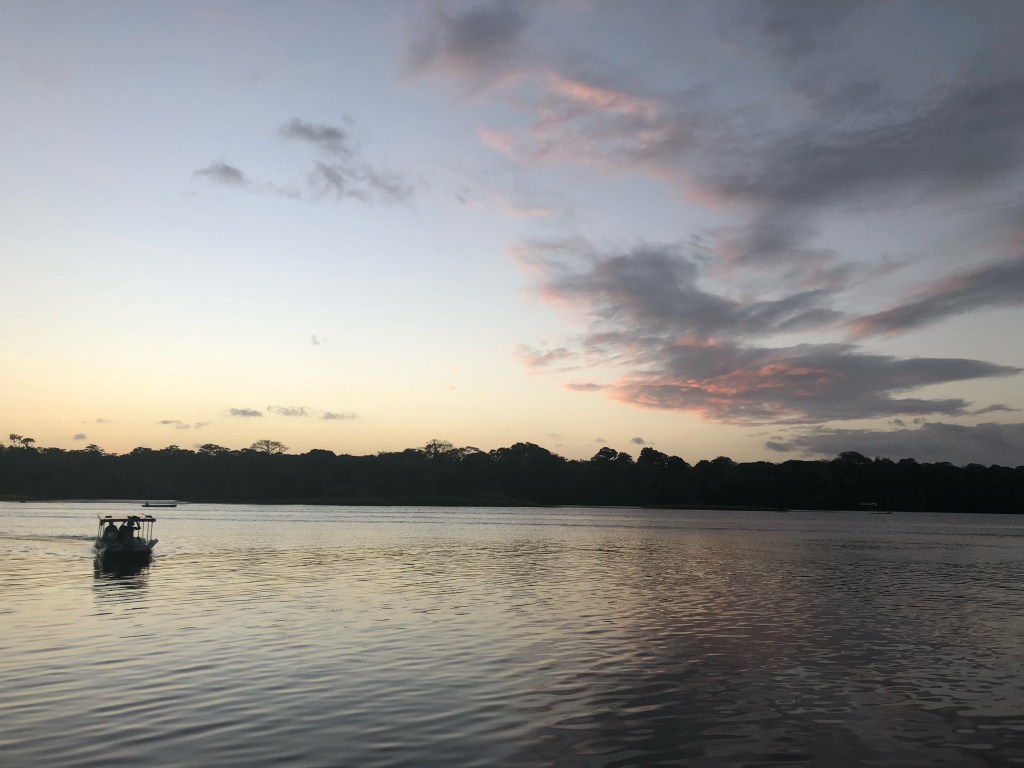 Lundi matin, hostel Aracari Garden. Le chant des oropendolas assure un réveil en douceur. Un café serré partagé avec Jennifer et Nico se charge d’éveiller mes sens afin de ne rien manquer de notre tour en canoë. Israël, notre guide, nous distribue gilets de sauvetage et jumelles, et nous embarquons tous les trois dans le petit bateau. Il fait un temps magnifique. Le soleil rasant colore les arbres de reflets roux, puis, s’élevant, transforme la rivière en miroir.