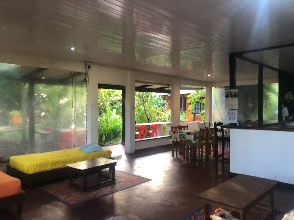 Nous accostons et parcourons avec les petits Suisses les 300 mètres qui nous séparent de notre auberge. Le hameau s’articule autour d’une « rue » principale parallèle au fleuve, et de minuscules artères qui joignent l’océan à la rivière. L’hostel Aracari se trouve au bout d’une d’entre elles, au bord du terrain de football et à 100m de la plage. De petites chambres comfortables entourent un jardin désordonné, juxtaposant une grande terrasse commune équipée d’une cuisine. Les oropendolas peuplent les grands arbres posées à l’entrée de l’établissement. L’endroit transpire la douceur de vivre, et l’accueil est tranquille et souriant.
