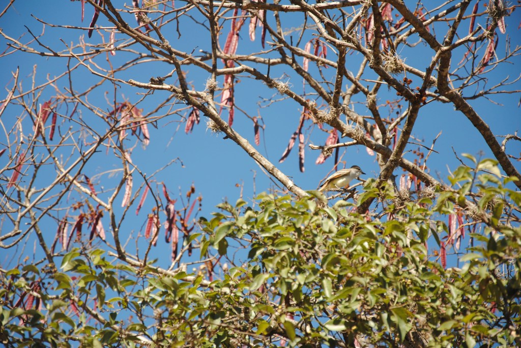 Une tâche rouge dans le ciel immaculé me sort de ma rêverie. Un superbe petit oiseau écarlate, qu’il me faudra identifier, virevolte dans les arbustes.