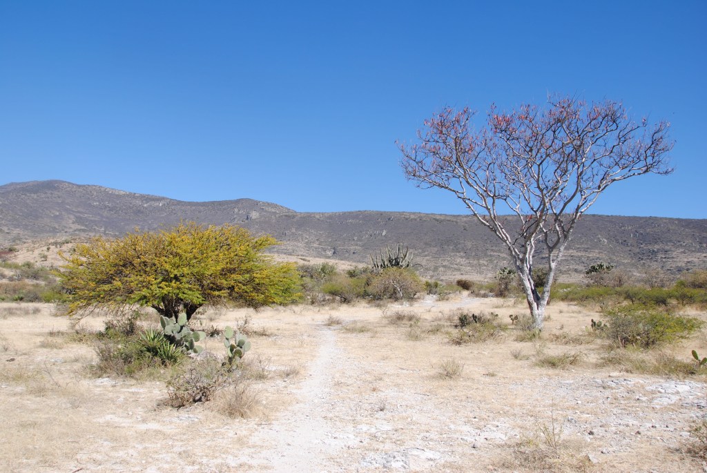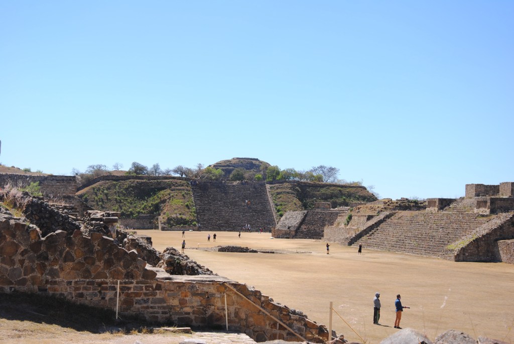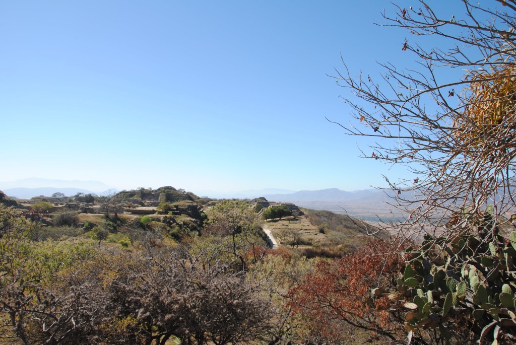 Niché en haut d’une colline, le site est grandiose. Il offre en outre une vue panoramique sur Oaxaca et les vallées qui l’entourent. L’occasion de constater l’extrême aridité de la zone. Sous le ciel azur, le sol terreux a la couleur du sable, et les montagnes semblent recouvertes d’une couche de cendres.