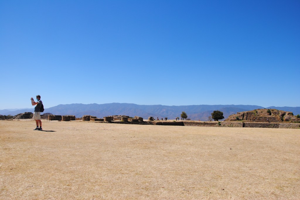 Mardi matin, Oaxaca. Aujourd’hui, je vais découvrir mon premier site pré hispanique ! En effet, Monte Albán, l’un des sites archéologiques majeurs du pays, est ouvert. Je prends donc le premier bus possible et découvre, avec une poignée de voyageurs matinaux, la cité zapotèque de Monte Albán. Parmi les privilégiés à fouler les travées désertes de ces ruines millénaires, Antoine, pâtissier breton, s’offre des vacances en attendant le retour des touristes dans le Morbihan.