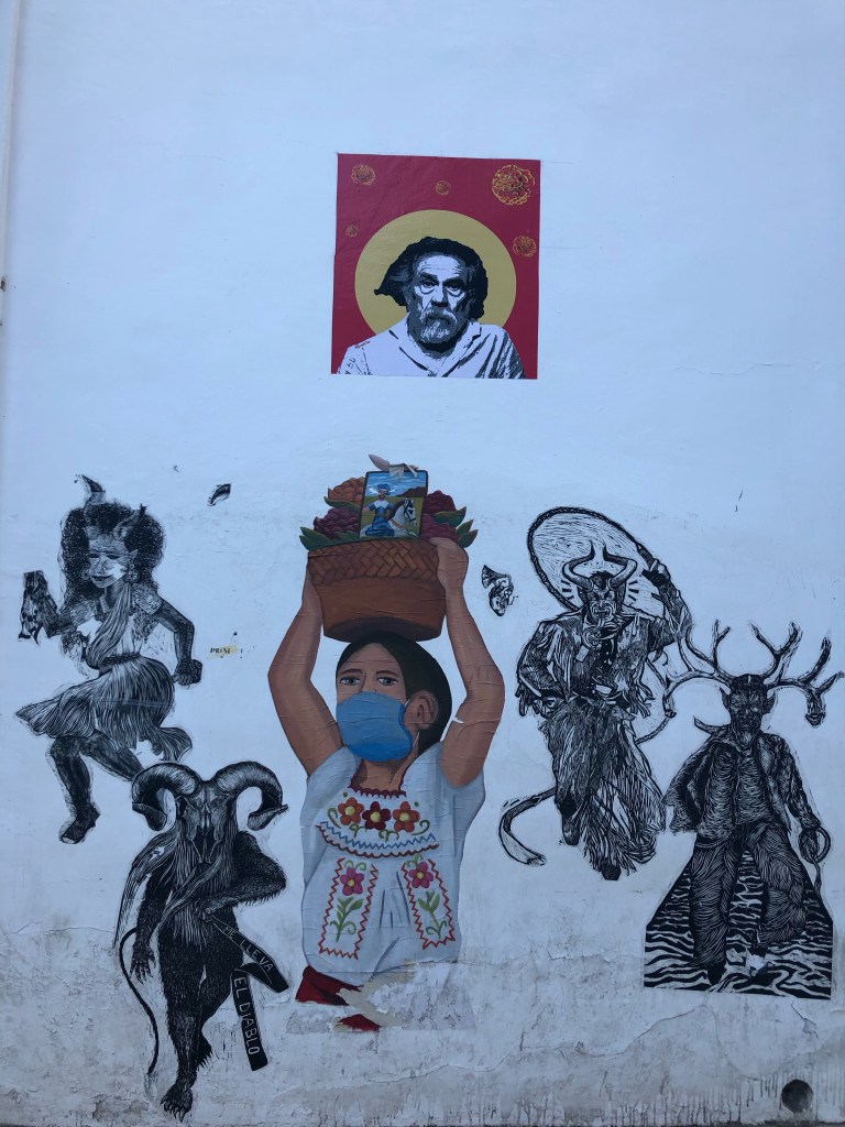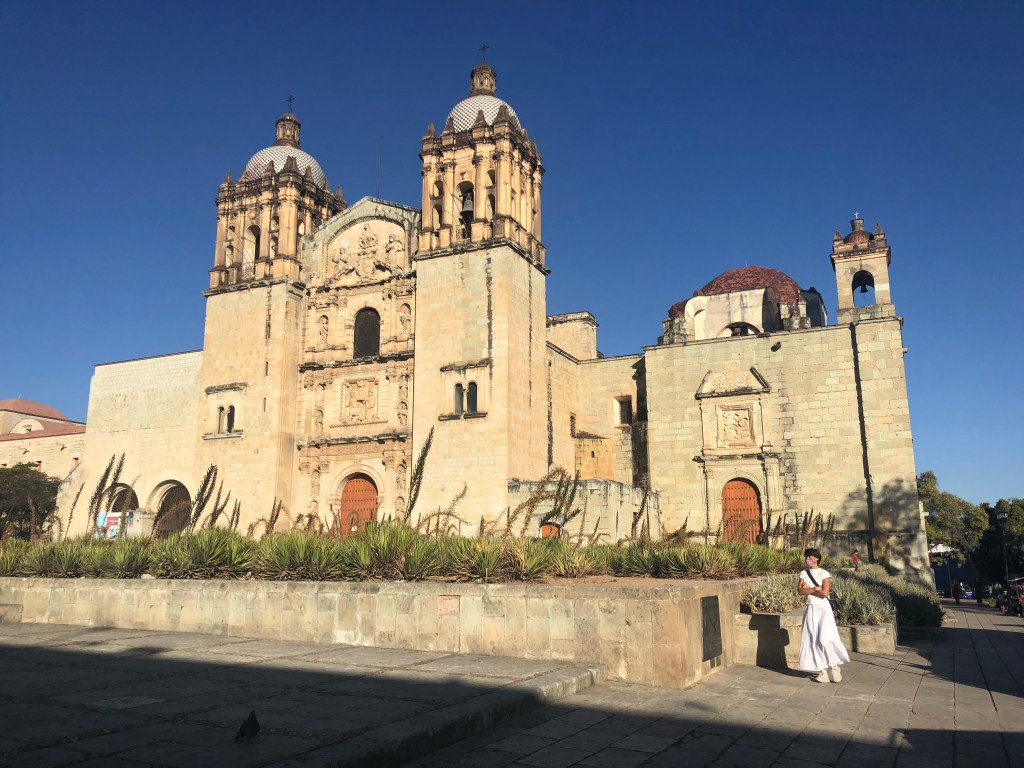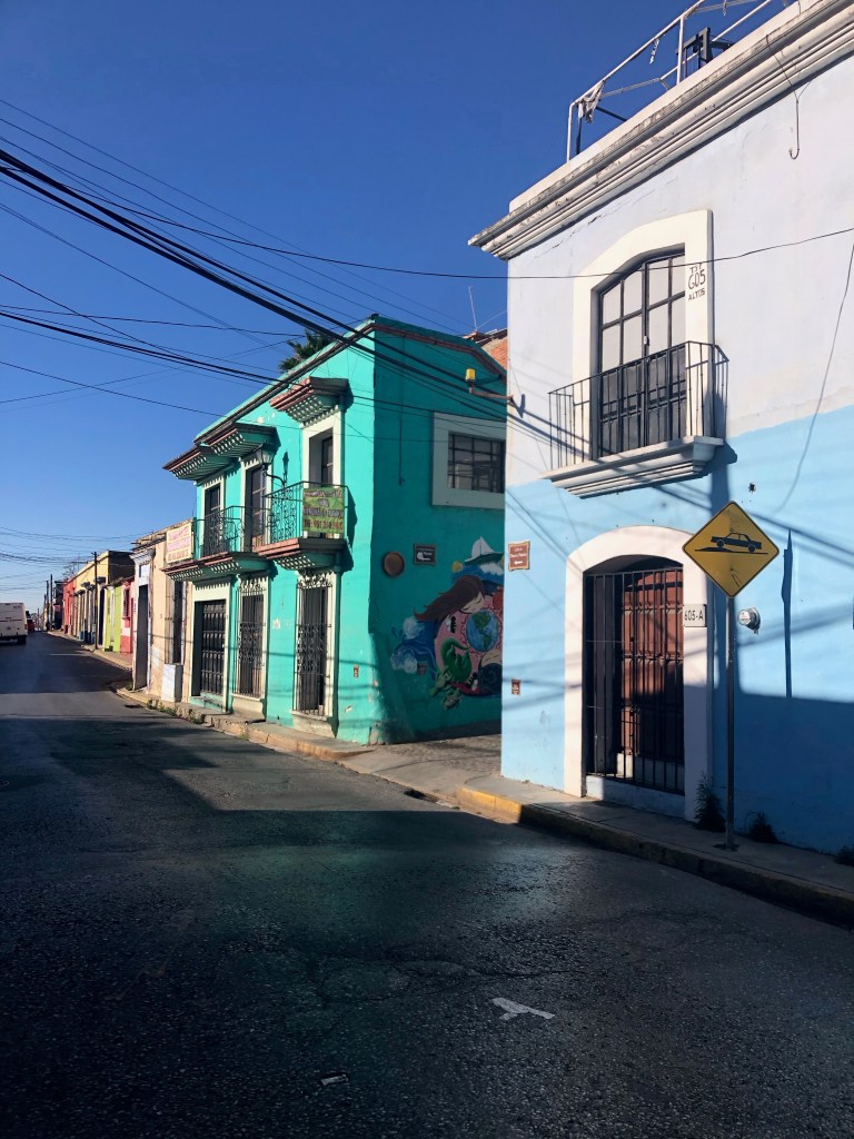 Après avoir découvert le sublime Zocalo, la place centrale avec sa cubique cathédrale, ses palais, son kiosque, et son marché artisanal, je jette mon dévolu sur la place du couvent Santo Domingo. Je ne sais si c’est son parvis largement ouvert, le patchwork de couleurs des maisons qui l’entourent, ou les envoûtantes œuvres street art environnantes, mais je m’y sens particulièrement bien, comme dans un lieu inconnu mais étrangement familier.