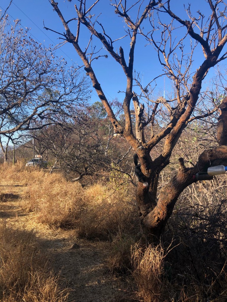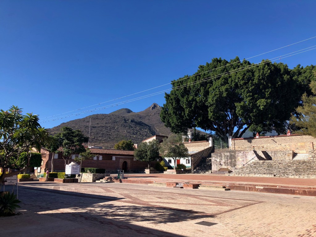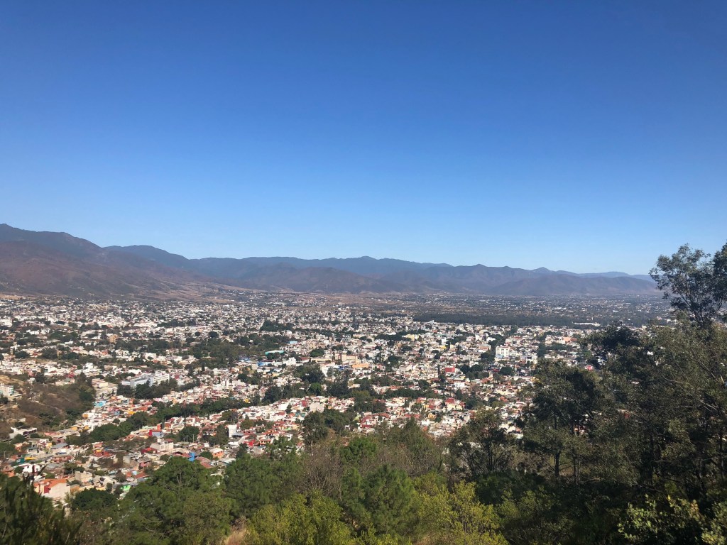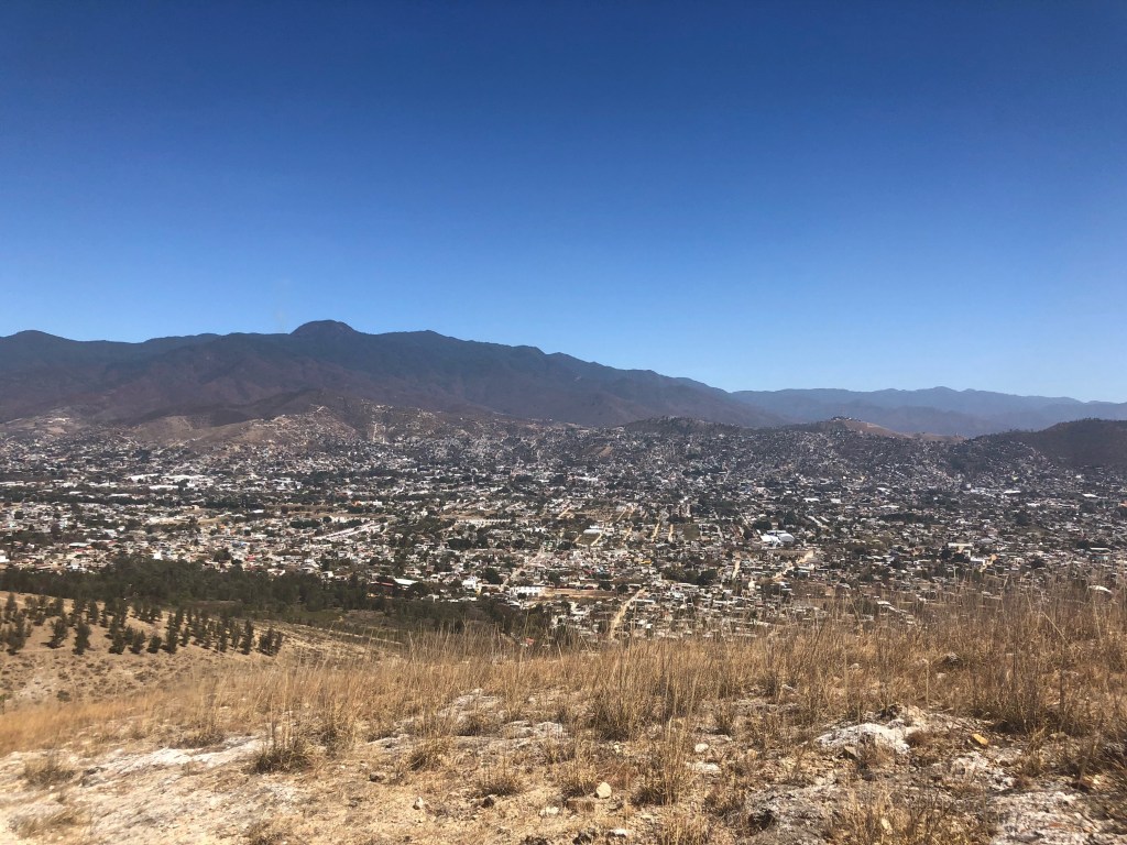 Mes pérégrinations dans le quartier me mènent au pied de la grande colline sur laquelle trônent les ruines d’Aztompa. Sous un soleil brûlant, je m’élève au dessus de la ville au milieu d’arbustes grillées. En nage, j’atteins l’entrée du site, ou une charmante mexicaine m’indique, désolée, que les ruines sont fermées depuis le 23 Mars 2020. Qu’importe, la vue panoramique vaut seule les efforts consentis pour arriver jusqu’ici. De mon perchoir, je contemple le théâtre de mes aventures à Oaxaca : à l’Est, sur une colline semblable, j’aperçois les pyramides de Monte Albán; à l’ouest, la colline du Fortin et sa forêt sèche; entre les deux, les superbes églises de Oaxaca marquent le centre ville; enfin au loin, je devine la route de Mitla et ses beautés cachées.