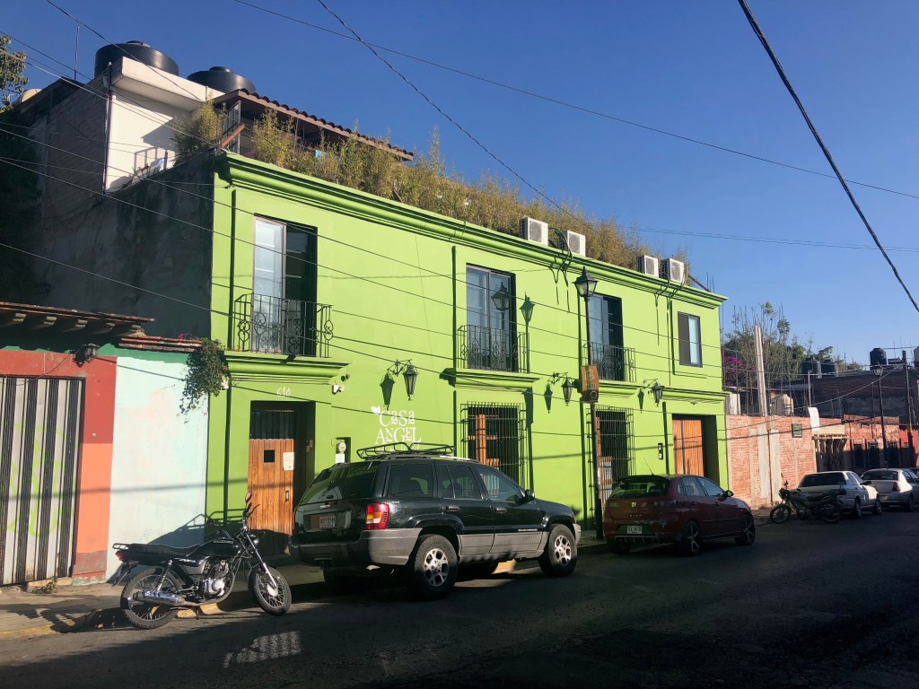 La Casa Angel s’intègre joliment dans le décor, avec sa façade vert-amande, ses gardes-fenêtres en fer forgé, et sa lourde porte en bois. Du toit-terasse, la vue sur les montages alentours est imprenable.