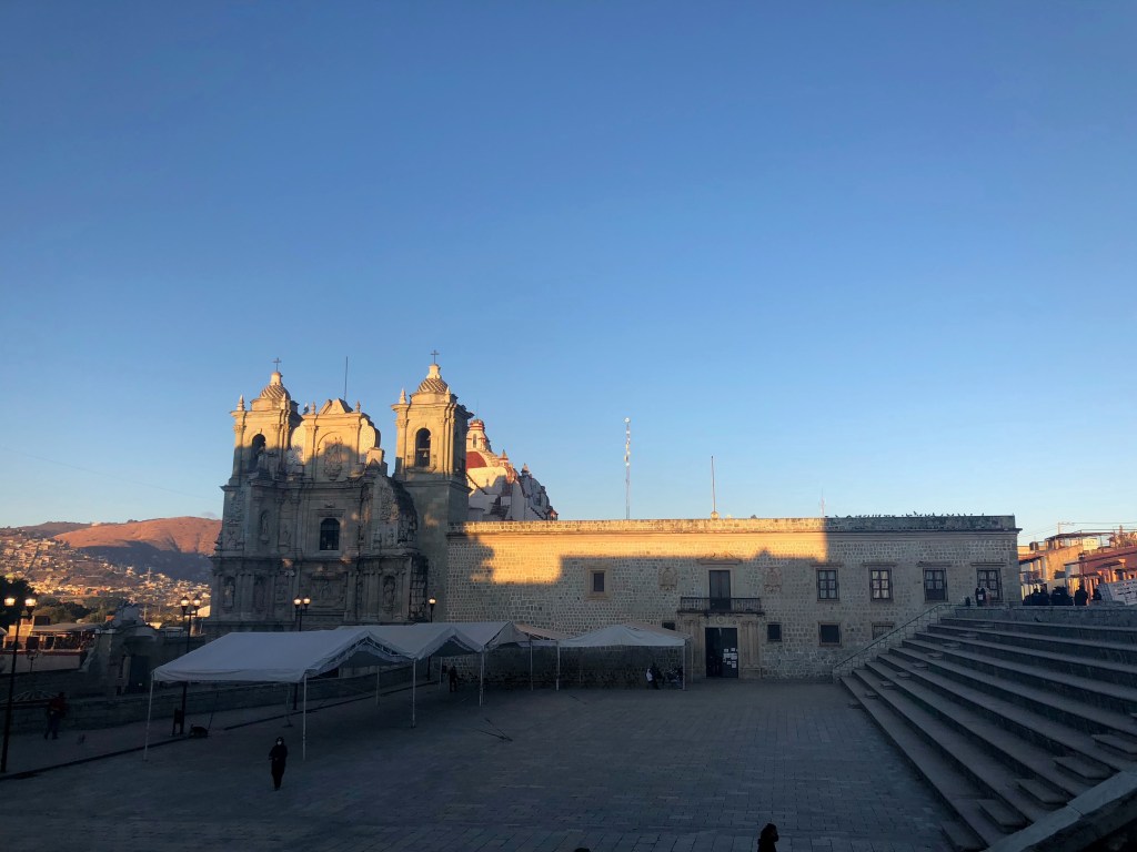 Puis redescends de mon nid pour rejoindre Antoine sur le parvis du couvent San Domingo. Nous dégustons une bière artisanale sur un « roof-top » donnant sur les tours de l’église, dont le soleil éclaire les dômes. Puis dînons, remarquablement bien, dans un charmant restaurant non loin de là. La discussion nous emmène de la Bretagne au Svalbard, en passant par les terrains de foot, évidement. Nous nous saluons après avoir convenu du programme du lendemain : l’exploration de la vallée de Tlacolula. Je trouve une auberge endormie et imite mes colocataires en un battement de cil.