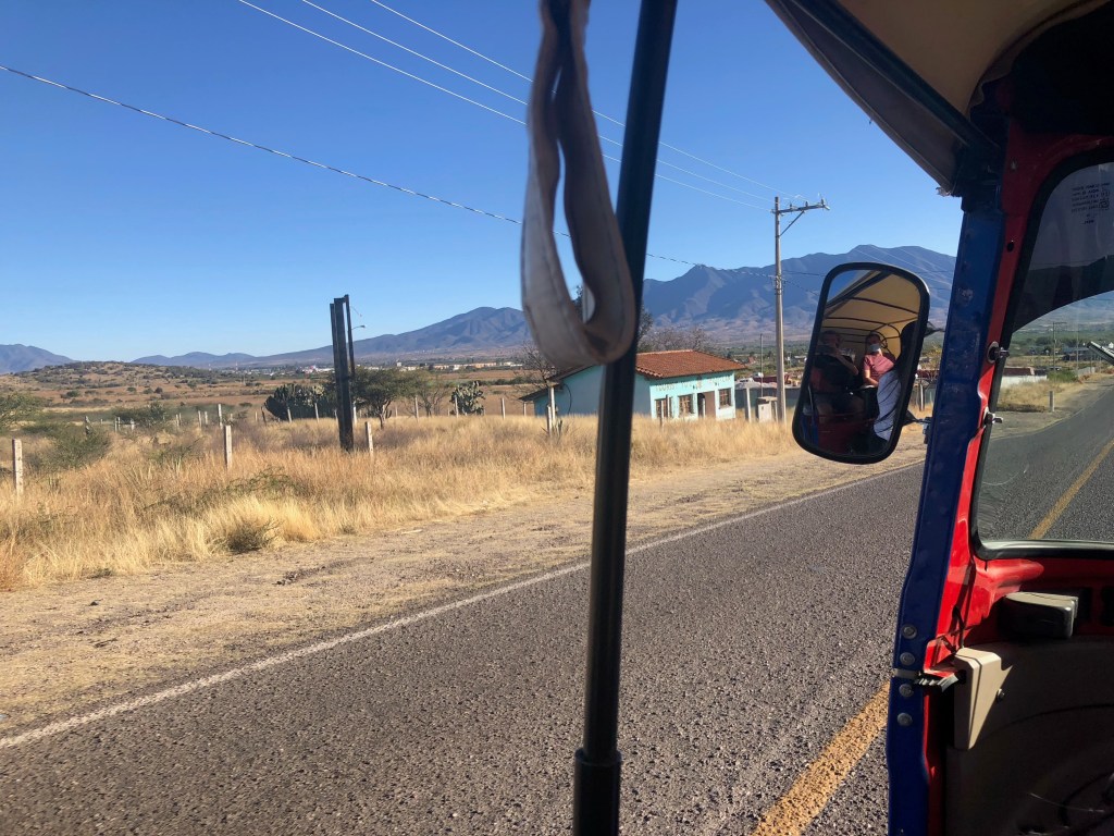 Jeudi matin, Oaxaca. Le départ du bus de nuit à destination de Puerto Escondido n’est qu’à 21h30. Ce qui me laisse toute la journée pour profiter de Oaxaca et ses environs. Au petit déjeuner, je retrouve Boutayna, croisée dans le “collectivo” hier. Directrice de casting free lance, et fan de cinema d’auteur, elle me raconte son confinement prolongé en Grèce, d’où elle est arrivé début Janvier. Jonhatan, coach en carrière en vadrouille à travers le monde depuis sept ans, se joint à la discussion. Nous échangeons longuement, avant de se décider à sortir profiter des richesses archéologiques du coin. Boutayna et Jonhatan partent vers Monte Albán, tandis que je me dirige vers les ruines d’Aztompa, qui dominent une colline à l’ouest de la ville.