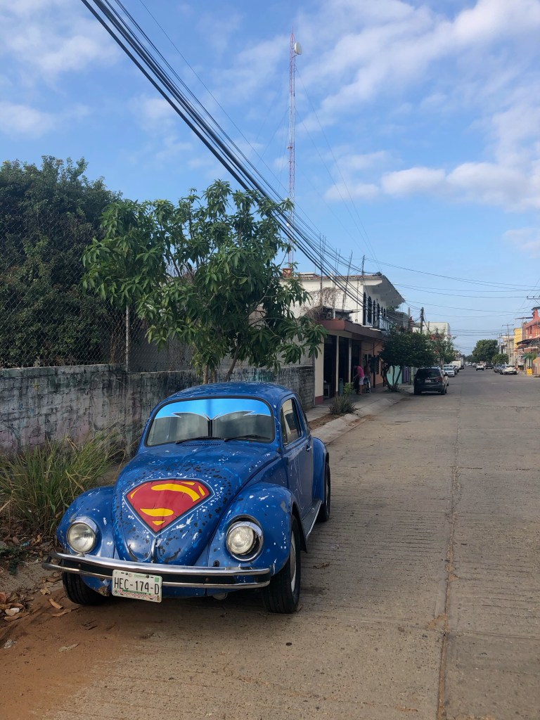 De là, nous nous entassons dans un taxi collectif déjà à moitié plein et faisons route, serrés comme des sardines, vers Oaxaca. Au gré des carrefours, des gens montent, et descendent de la vieille Nissan couleur lie-de-vin. A l’un d’eux monte Boutayna, une française qui loge par hasard aussi à la Casa Angel. Le malicieux chauffeur nous dépose à deux kilomètres de l’arrêt prévu, et nous laissons Boutayna à ses emplettes, pour aller se rafraîchir d’une cerveza sur les terrasses du Zocalo. Je laisse Antoine terminer seul d’attendre le bus de nuit qui doit le mener sur la côte pacifique, achète quelques légumes au marché, et rentre à l’hostel. Un repas sain plus tard, je plonge dans un lourd sommeil après cette improbable et épique journée dans les vallée torrides de l’Oaxaca.