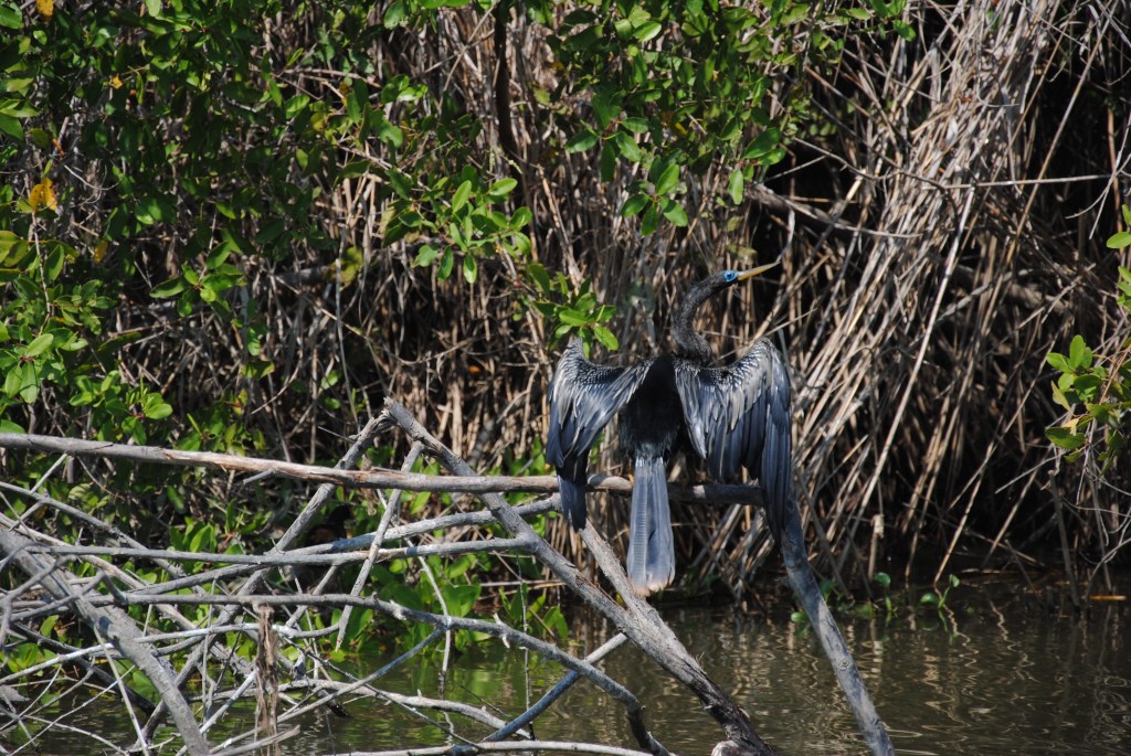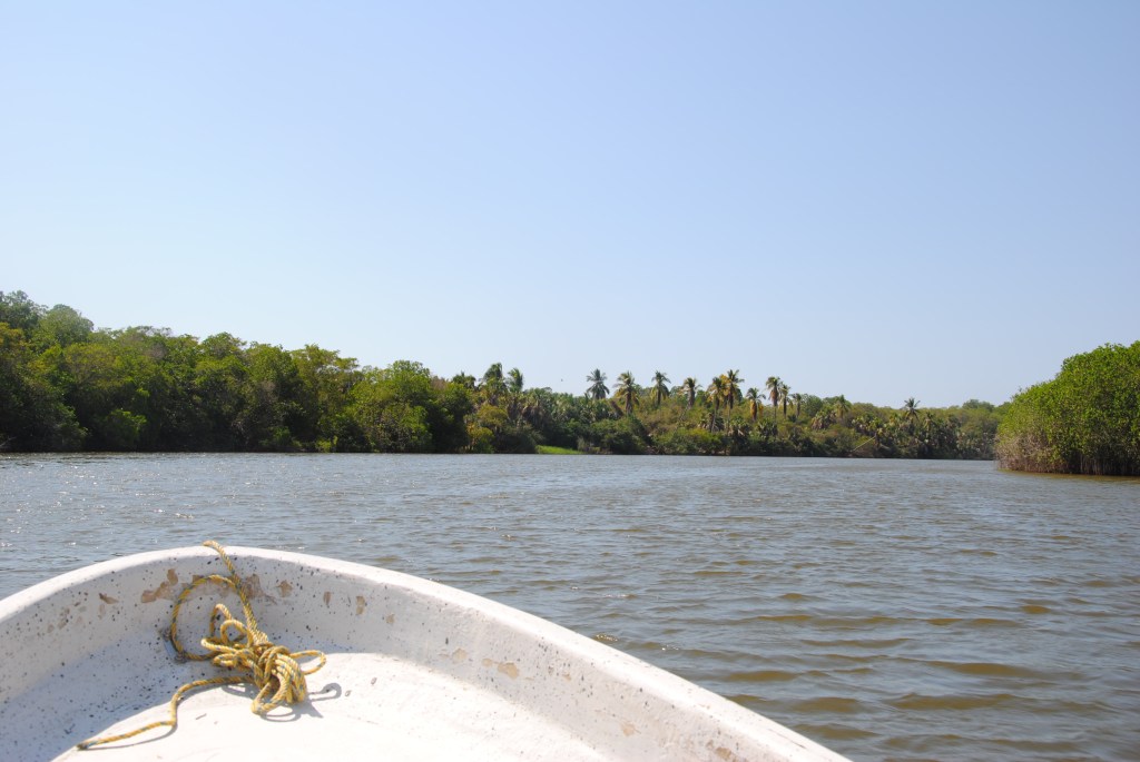 Pour l’heure, seuls les bords de la lagune Manialtepec, occupés par la mangrove, s’enorgueillissent d’une telle teinte. En l’absence de sentier pour en faire le tour, l’unique moyen d’explorer la grande étendue d’eau est d’engager les services d’un autochtone et de sa barque. Me voici donc dans la sommaire embarcation de Ricardo, appareil photo en main, guettant la faune aviaire du lac. Hérons et aigrettes sont nombreux, ainsi que les aigles pêcheurs, dont nous admirons un gros spécimen à l’œuvre, attrapant dans ses serres un poissons sans se mouiller les plumes.