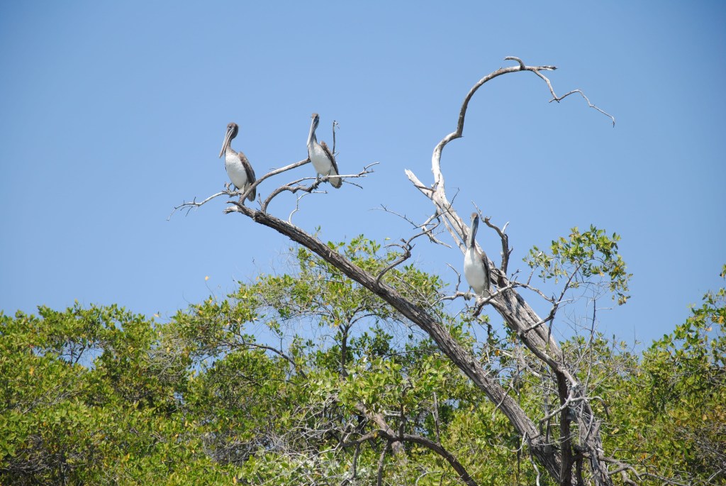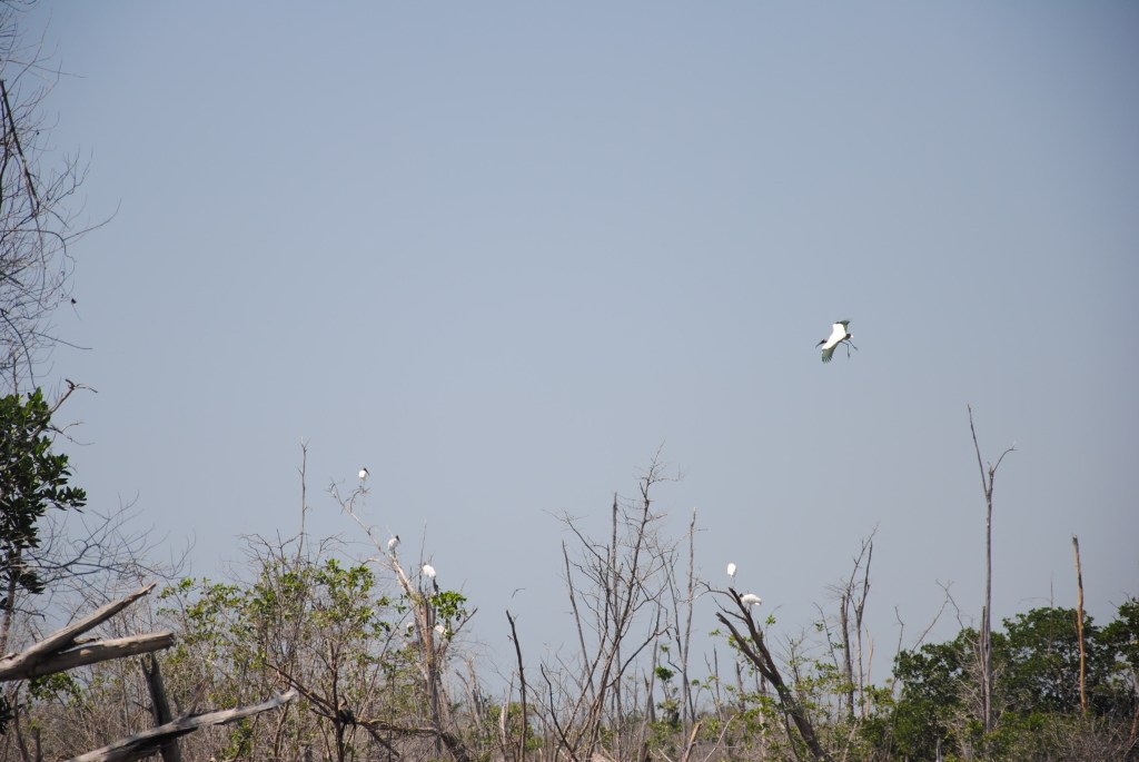 A mesure que nous nous rapprochons de la mer, les cormorans et les frégates, nichant sur des arbres mourants, se multiplient. De grandes cigognes noires et blanches déploient leurs immenses ailes juste au dessus de nous !