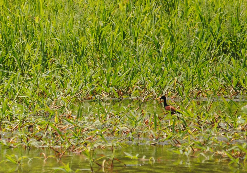 Plus loin, dans un étroit canal parallèle à la mer, je retrouve ces verdoyantes plantes aquatiques, habitat préférentiel des superbes jacanas et leur élégante tâche jaune frontale. Agiles martins-pêcheurs et virevoltants martinets complètent le tableau ornithologique.