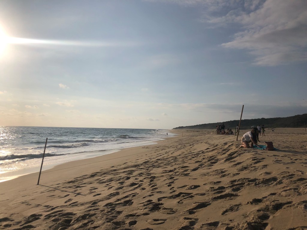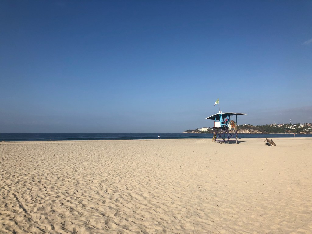 L’eau est douce et claire, propice à la baignade. Après un bon bain, en bons aventuriers, nous décidons de pousser la découverte jusqu’aux plages situées à l’extrémité ouest de Puerto. Nous nous perdons dans les rues d’un nouveau quartier, flanqués de villas luxueuses, mais finissons par trouver la longue et sauvage playa Bacocho. Avec les vagues, conséquentes, l’autre attraction du lieu est la mise à l’eau de jeunes tortues élevées dans un centre non loin. La « touristication » de la manœuvre donne lieu à un étrange spectacle : les volontaires font la queue, récupèrent une minuscule tortue, marchent vers la zone de lancement, délimitée par une corde, relâchent le petit animal, et le regardent rejoindre l’océan en prenant soin de rester derrière les barrières. Sur la plage, un guitariste à la voie nasillarde tente de séduire de jeunes naïades, trop occupées à travailler leur poses instagrammables pour prêter attention aux vocalises de l’artiste en herbe.