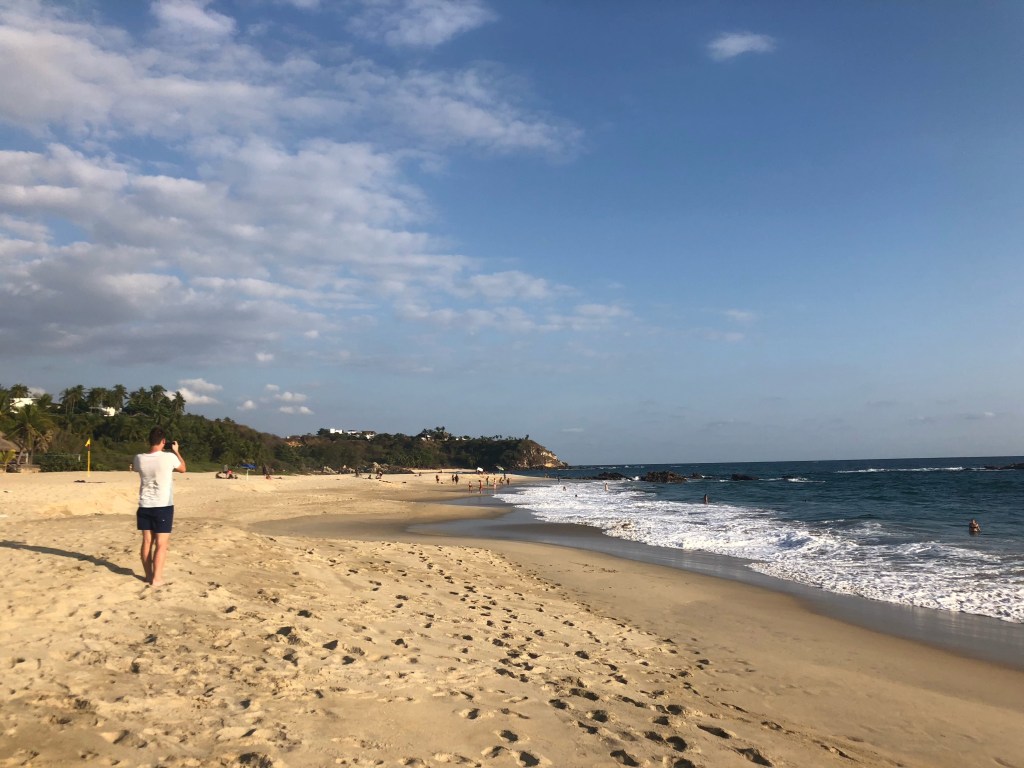 Je fais route vers Puerto Escondido, sous le sévère soleil de midi, et retrouve peu après Antoine, à la playa Carizalillo, une crique située non loin de la playa Manzanillo explorée la veille.